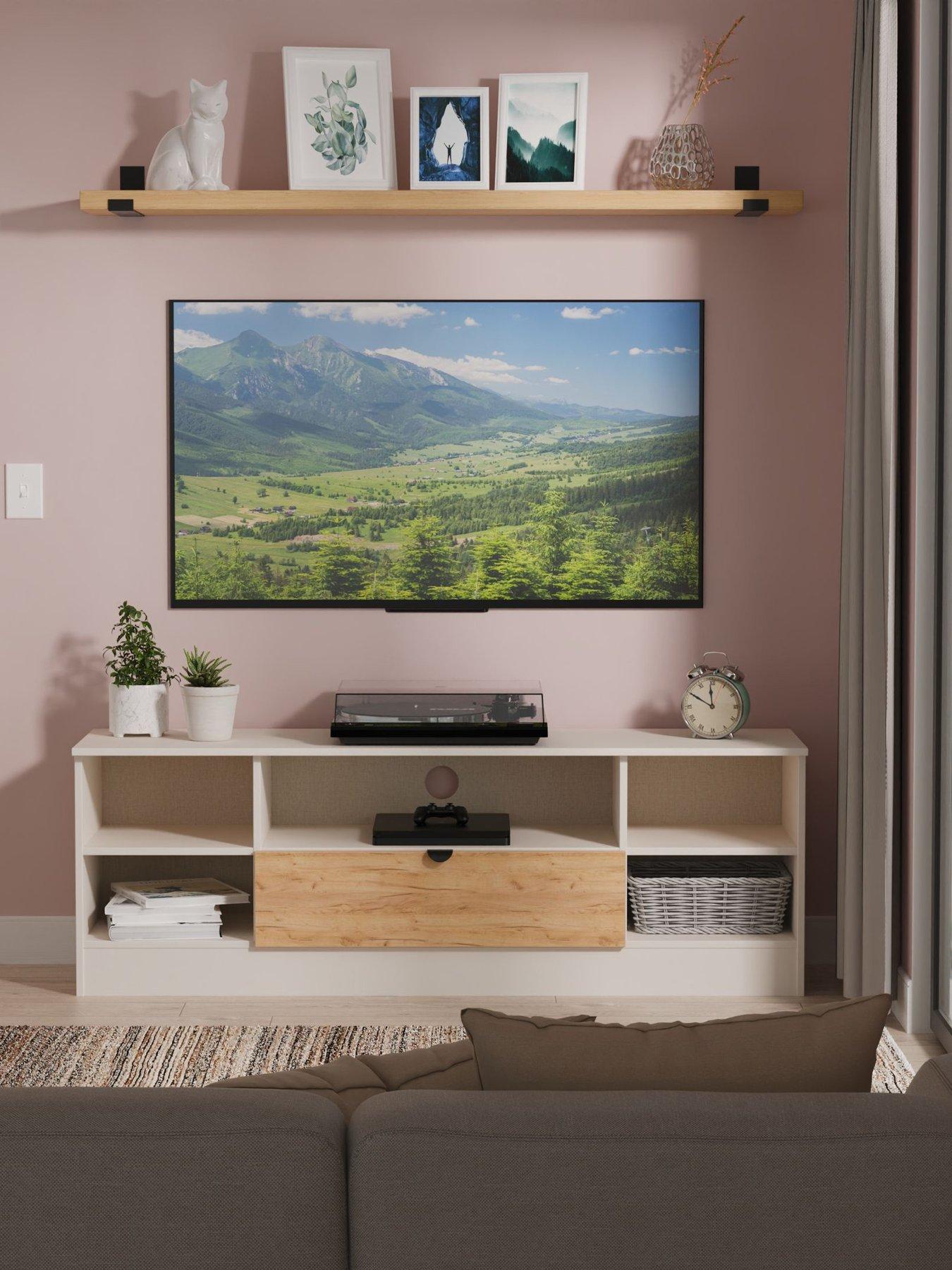 Swift Nefeli Ready Assembled Wide Tv & Media Unit - Oak/Cream
