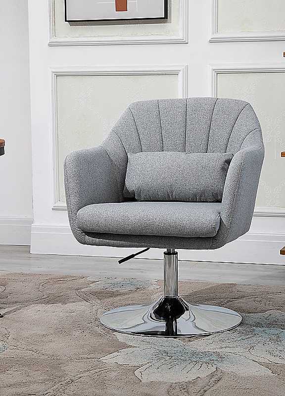 This retro-inspired tub vanity chair brings a timeless, stylish touch to any room, offering both elegance and comfort. Its classic design works effortlessly with a variety of room palettes, making it a versatile addition to your home. Whether placed in the living room, bedroom, or as part of your vanity setup, this chair will elevate your space with its chic look. Adjustable in height from 45cm to 57cm, this vanity chair offers flexibility to set the perfect position for your comfort. The under-seat lever allows you to easily adjust the height to suit your needs, while the 360° swivel movement ensures smooth and effortless gliding, allowing you to turn and move without any hassle. The steel frame provides a strong core for durability, and the large round base ensures excellent balance and stability. Designed with comfort in mind, the chair is filled with thick sponge padding and wrapped in breathable linen-feel fabric, offering a soft and supportive seating experience. A large seat cushion and a small back pillow are included to further enhance your comfort.Weight capacity: 136 kgAssembly required (minimal assembly)Linen (100% Polyester), Sponge, SteelOverall dimensions approx. 79-91H x 60W x 60D cmSeat dimensions approx. 45-57H x 47W x 46D cm Back dimensions approx. 35.5H x 46W cmPlease remember to measure your available space before ordering. If using on an un-carpeted floor we recommend rubber or felt protection pads be used under the legs to avoid damage to your floors.