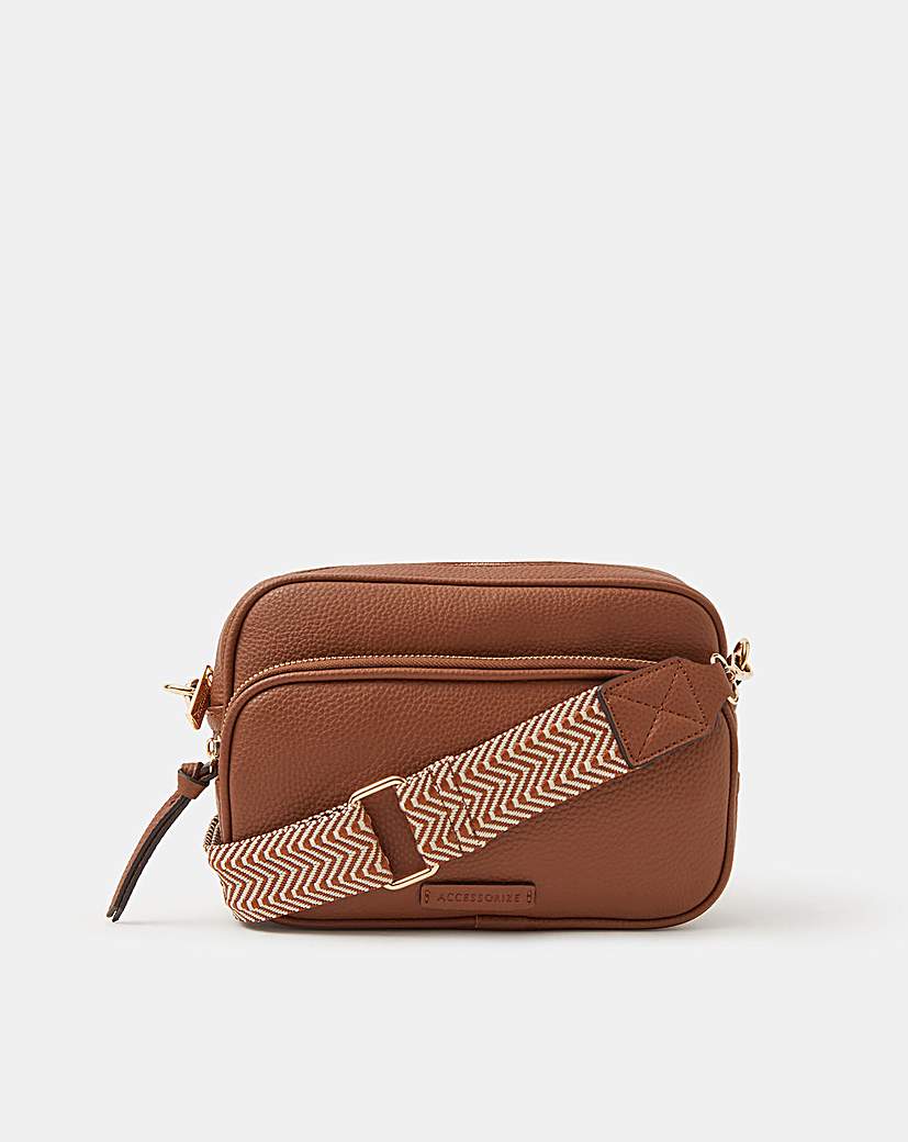 Accessorize Double Zip Camera Bag At-the-ready to complete any outfit, this bag makes life a little easier. It presents a faux leather finish with metal hardware and a zip pocket to the front. Fastens with a zip closure and dog clip fastenings to switch up the strap. A customisable style: this bag has a removable strap, meaning you can change up the design...every day of the week! From understated neutrals to punchy prints, why not take a look at our curated bag straps? Outer: Polyurethane (Pu) 100% Lining: Polyester (Recycled) 100%