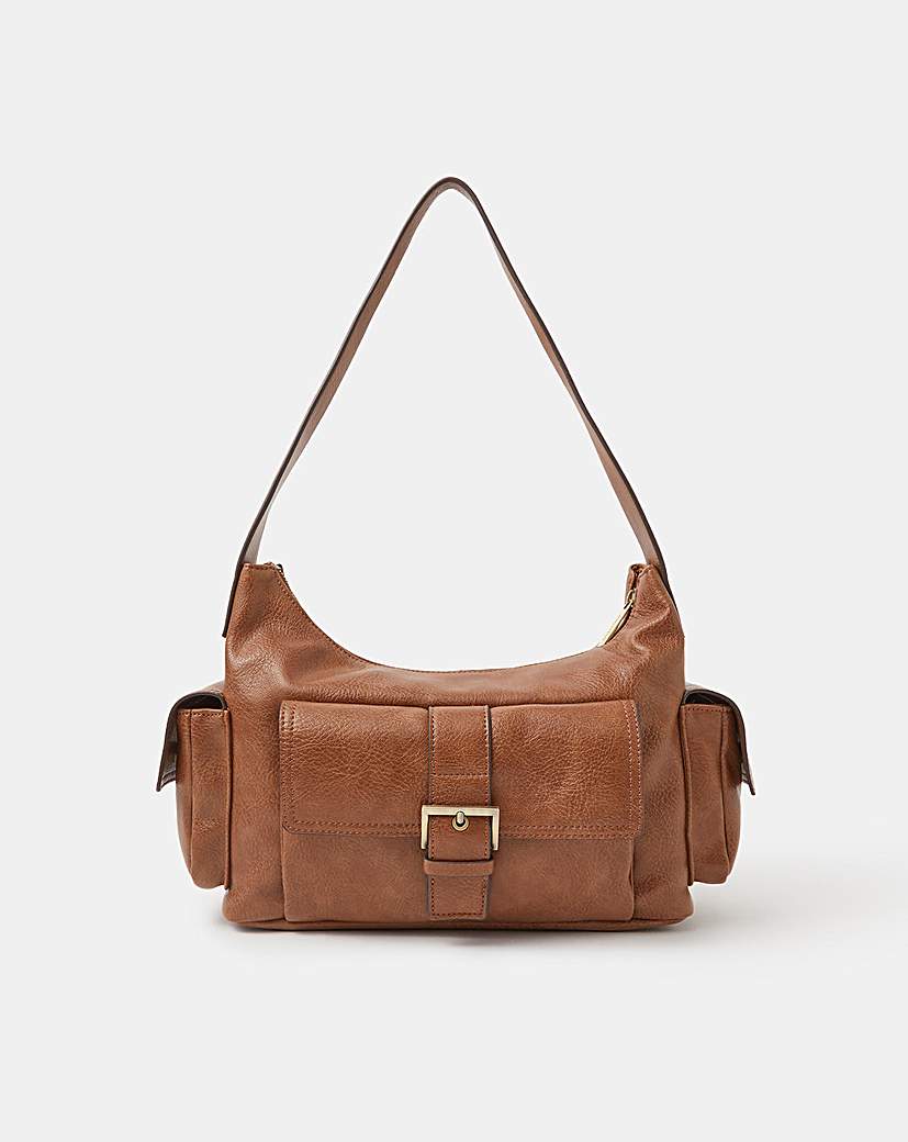Accessorize Utility Shoulder Bag A nod to Y2K combined with cool, contemporary finishes, this shoulder bag brings practicality and style to your accessories collection. Designed in faux leather, it features three utility pockets on the front and sides, whilst the main zip compartment has a small zip pocket inside. Outer: Polyurethane (Pu) 100% Lining: Polyester (Recycled) 100%