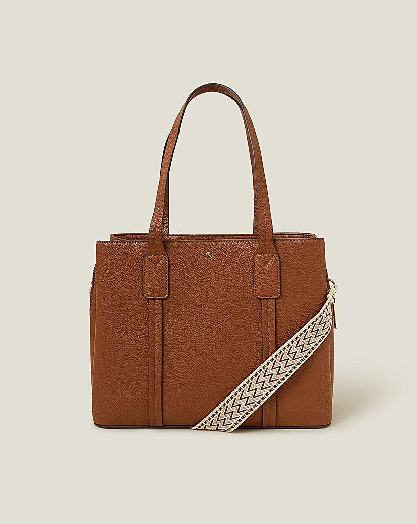 Accessorize Webbing Strap Tote Bag Mary Poppins energy. Your 9-5 is incomplete without this tote bag, ready and raring to assist you on your commute. Featuring two compartments with a laptop sleeve to the centre, this bag fastens with a zip and magnetic dot fastenings with an internal zip pocket. Switch it up and go use the detachable webbing strap for cross-body carrying. Outer: Polyurethane (Pu) 100% Lining: Polyester (Recycled) 100%