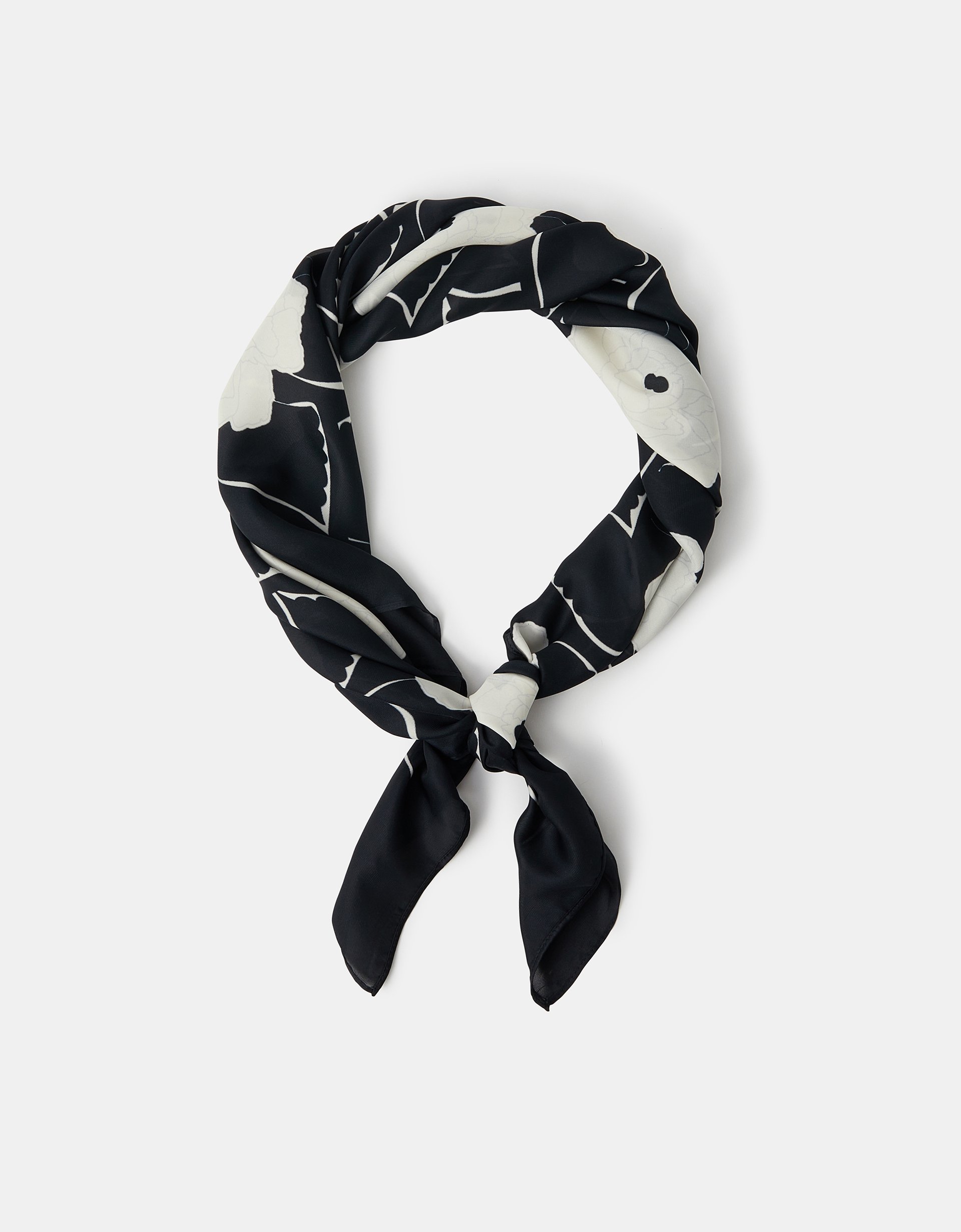 Made from silky soft satin fabric, this scarf showcases a classic floral design in neutral tones. Tie it like a neckerchief for an instant style upgrade.