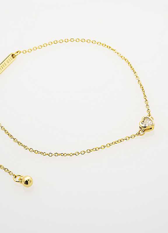 Complete your look with Ted Baker's Halle Mini Crystal Heart Adjustable Bracelet. Finished in gold-tone plating, this fine chain bracelet features a single crystal-embellished heart charm for a subtle hint of sparkle. Designed with an adjustable clasp for the perfect fit, it's ideal for everyday wear or layering with other bracelets. Presented in a Ted Baker branded gift box - perfect for gifting or adding to your own jewellery collection.Fine European crystalAdjustable fitGift box packagingGold-tone plating | crystal heart bracelet, adjustable gold bracelet, gold plated charm bracelet, delicate gold bracelet, gold bracelet with a heart, bracelet with crystal beads, thin gold chain bracelet