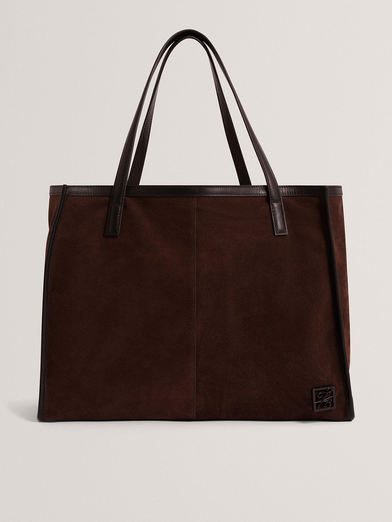 Ted Baker Script Detail Large Suede Tote Size & Fit Dimensions: H35Cm X W45Cm X D13Cm Details Script Detail Large Suede Tote By Ted Baker Brown Tote Bag Magnetic Snap Closure Fastening Script Detail Logo Two Shoulder Straps Suede Fabric Internal Pocket With Zip Fastening
