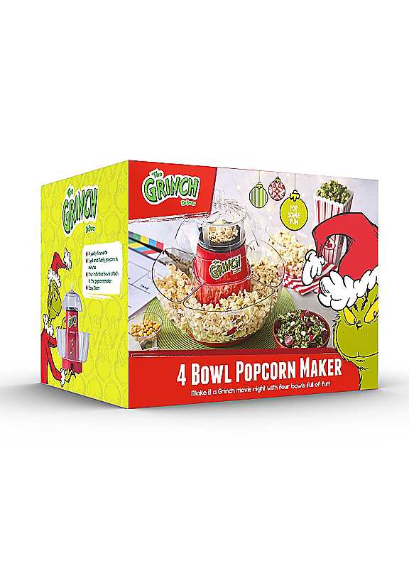 Watch your favourite Devious Green Grinch movie with a bowl of Popcorn from The Grinch Portable Popcorn Maker. Just add the popcorn kernels, press a button and beautiful popcorn in minutes, Add sugar, salt or caramel to complete your favourite movie snack.Plastic