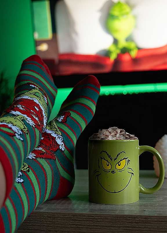 Are you a Grinch before coffee? Thaw out with this festive Mug and Socks gift set! Get cosy with your go-to hot drink in a novelty mug featuring your favourite Christmas humbug, and slip into some super comfy socks to match!Brand: The GrinchMug - 100 % ceramic Socks, 98% Polysester 2%-elastane