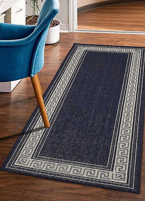 The Homemaker Rugs Collection Gel Backed Greek Key Runner - Navy - Size 60 x 230 cm
