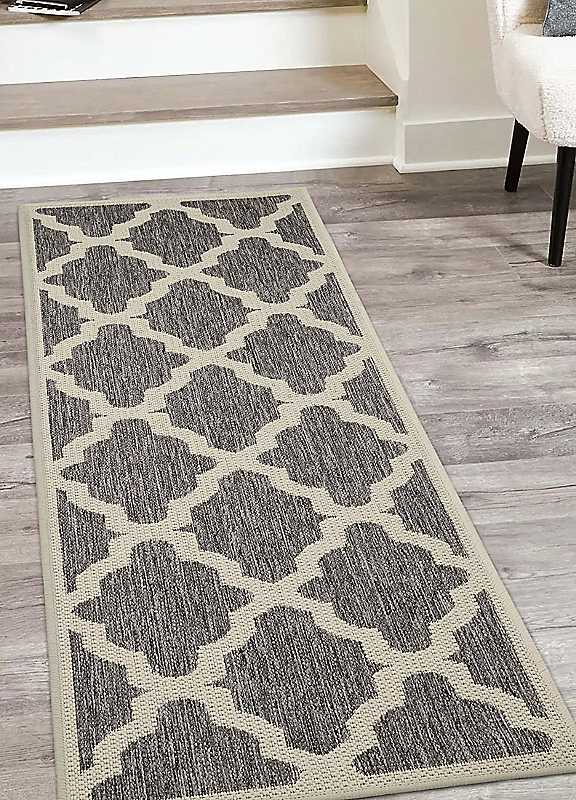 The Homemaker Rugs Collection Gel Backed Trellis Runner - Grey - Size 60 x 230 cm