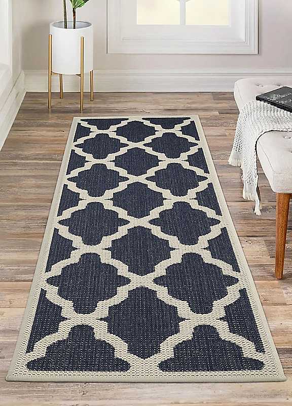 The Homemaker Rugs Collection Gel Backed Trellis Runner - Navy - Size 60 x 230 cm