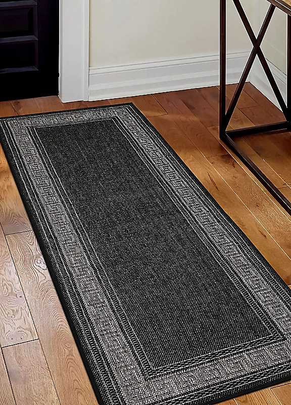 The Homemaker Rugs Collection Greek Key Gel Backed Flat Weave Runner - Black - Size 60 x 230 cm