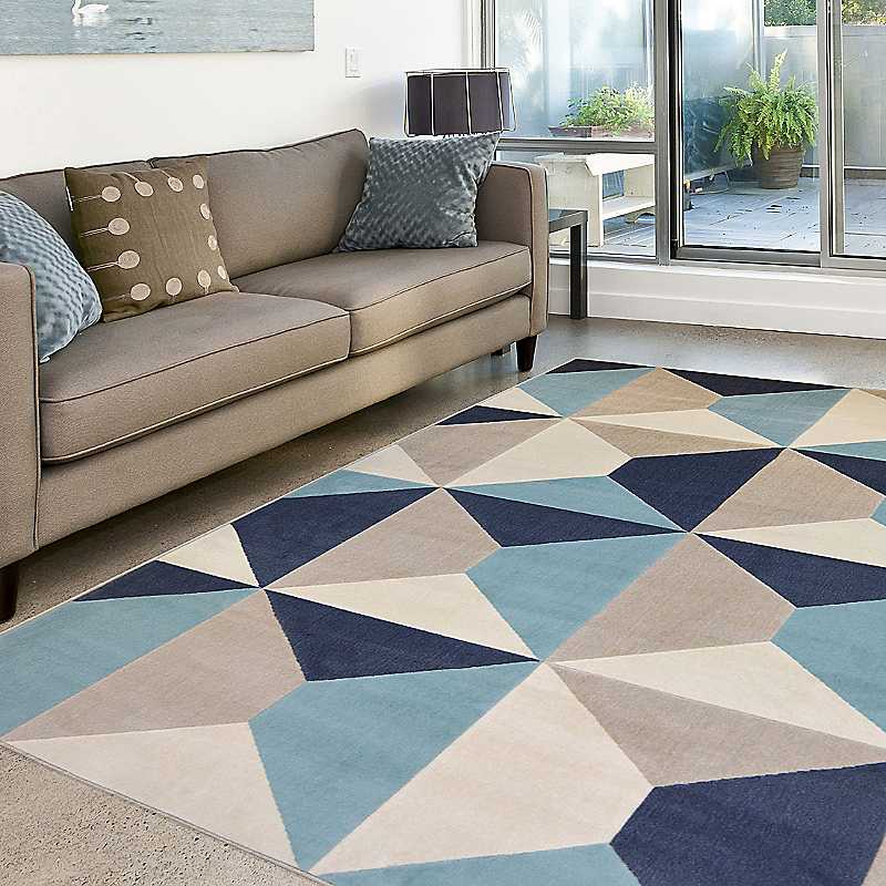 The Homemaker Rugs Collection Square Block Rug - NATRL/BLUE - Size 160 x 230 cm