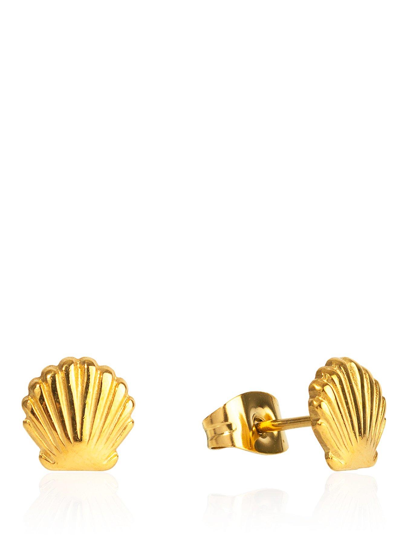 The Love Collection 18Ct Gold Pvd Plated Waterproof Stainless Steel Shell Studs - Women