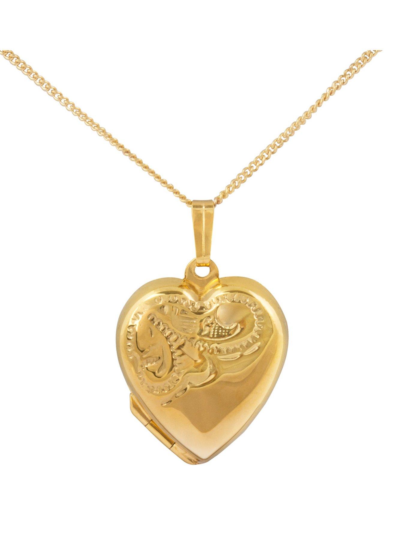 The Love Collection 18Ct Plated Sterling Hand - Engraved Heart Locket, 18" Adjustable Curb Chain - Yellow Gold - Women