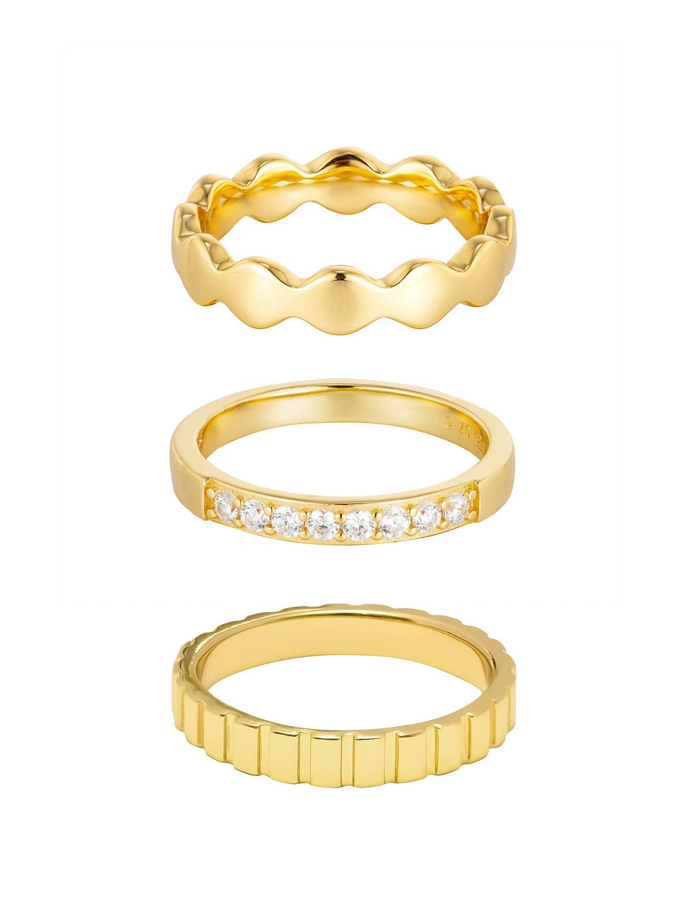 The Love Collection 18Ct Plated Sterling Silver Set Of Three Bobble, Cz And Ribbed Rings, Gold, Size R, Women - Gold - R