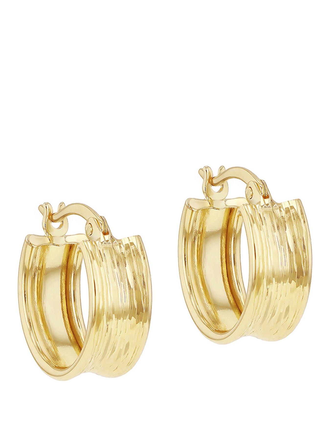 The Love Collection 9Ct Yellow 5.5Mm X 14Mm Diamond Cut Creole Hoop Earring - Gold -