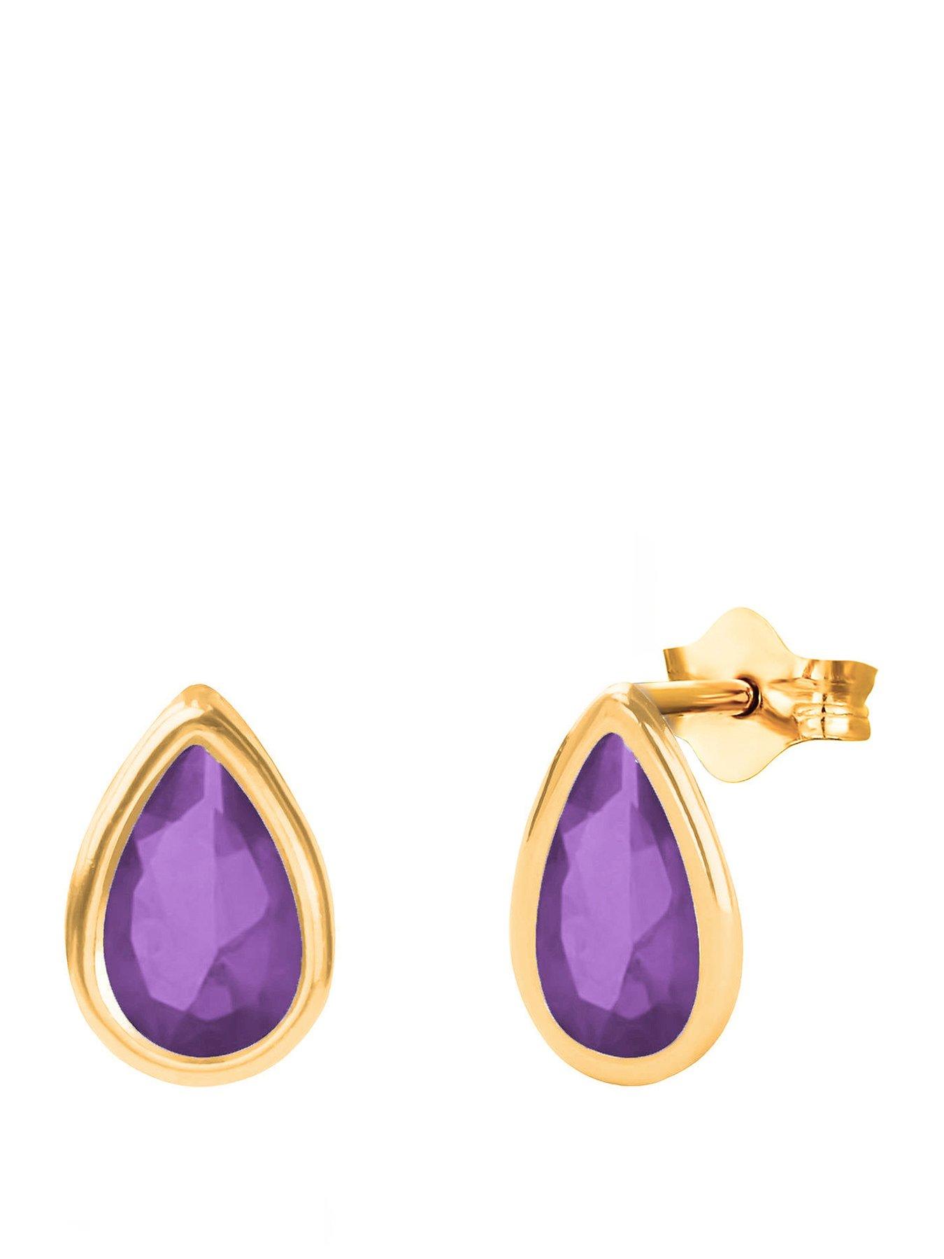 The Love Collection 9Ct Yellow Gold Amethyst Teardrop Rubover Stud - Women