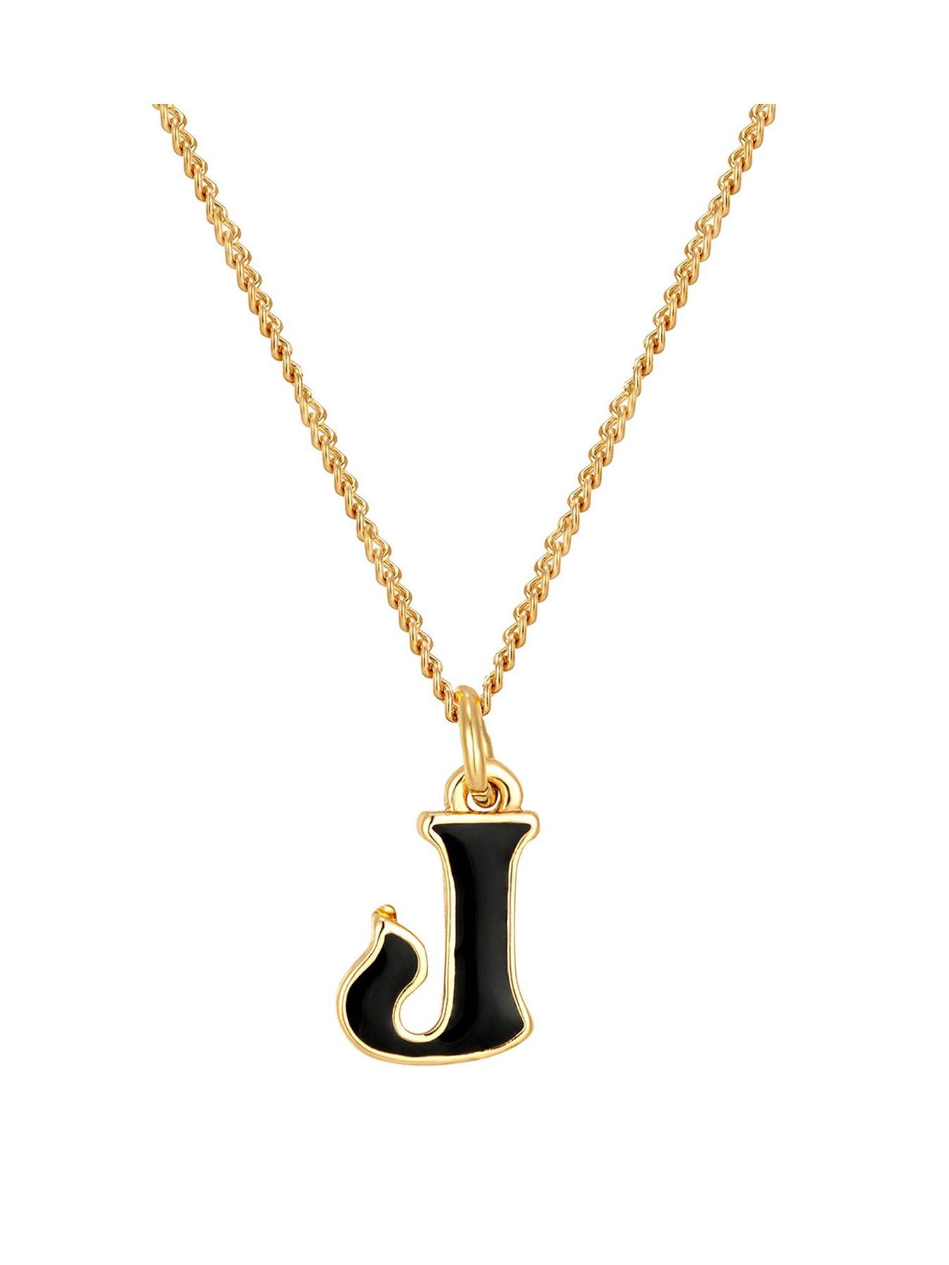 The Love Collection Gold Plated Enamel Alphabet Charm With Chain - Black - Size F - Women