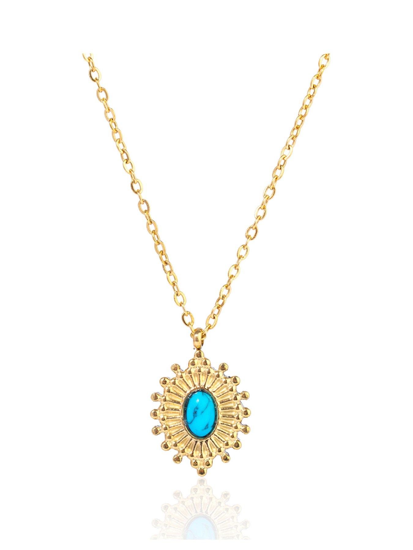 The Love Collection Gold Plated Stainless Steel Boho Turquoise Pendant Necklace - Women
