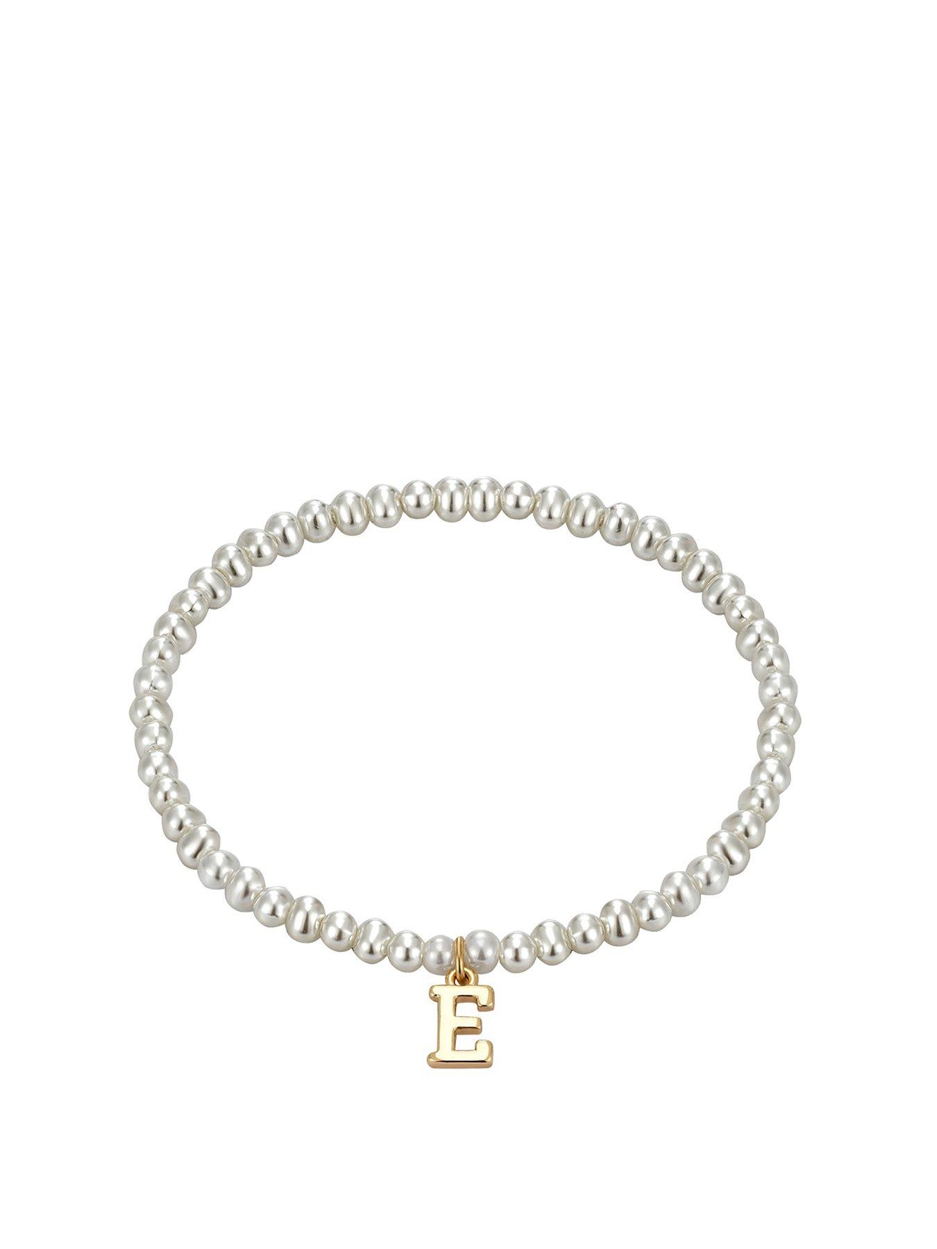 The Love Collection Pearl Stretch Bracelet With Gold Letter Charm A Delicate Stretch Bracelet Featuring Lustrous Faux Pearls And A Customisable Gold Plated Letter Charm. Elegant Yet Simple, This Bracelet Adds A Personalised Touch To Your Everyday Look. The Elasticated Design Ensures A Comfortable Fit, Making It Suitable For All Wrist Sizes. Perfect As A Gift Or Keepsake, It Effortlessly Complements Both Casual And Formal Attire. Height: 160 Mm Age Range: 3+ Fashion Jewellery Type: Necklaces Metal Type: Base Metal Pearl Stretch Bracelet With Gold Letter Charm Everyday Wear Will Arrive In Stylish Gift Box Adds Sophistication To Your Look Meaningful Gift Classic Design 160Mm Stretch Pearl Chain