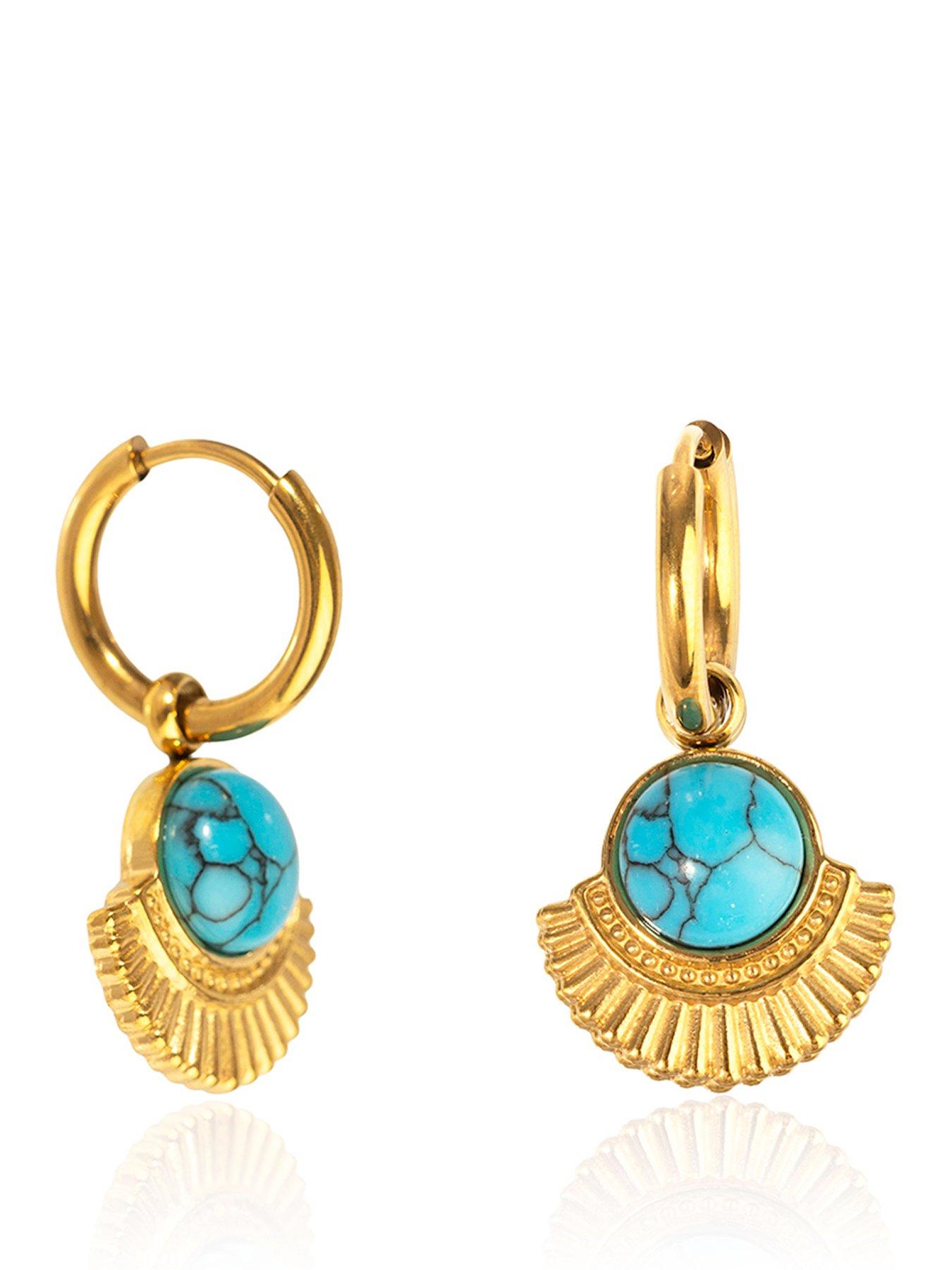 The Love Collection Plated Stainless Steel Boho Turquoise Charm Hoop - Gold -