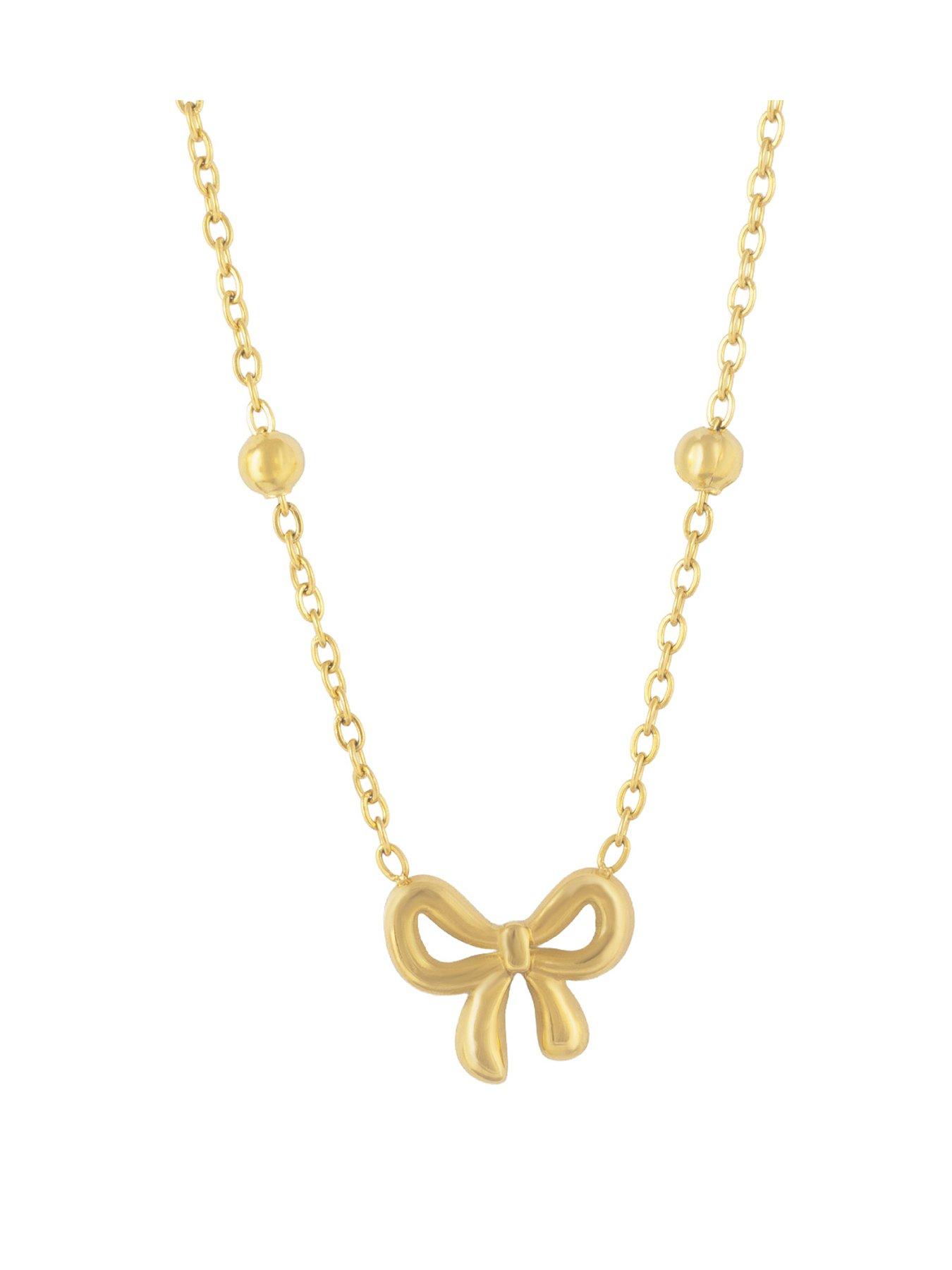The Love Collection Gold Plated Stainless Steel Bow Saturno Necklace A Charming Bow Pendant, Plated In Radiant Gold On A Stainless Steel Chain. Its Timeless Design And Bright Sheen Make It A Lovely Everyday Piece. Age Range: 3+ Clasp: Y Clasp Type: Lobster Claw Clasp Fashion Jewellery Type: Necklaces Metal Type: Stainless Steel Gold Plated Stainless Steel Bow Saturno Necklace Made From Stainless Steel Will Arrive In Stylish Gift Box Everyday Wear Adds Sophistication To Your Look Classic Style