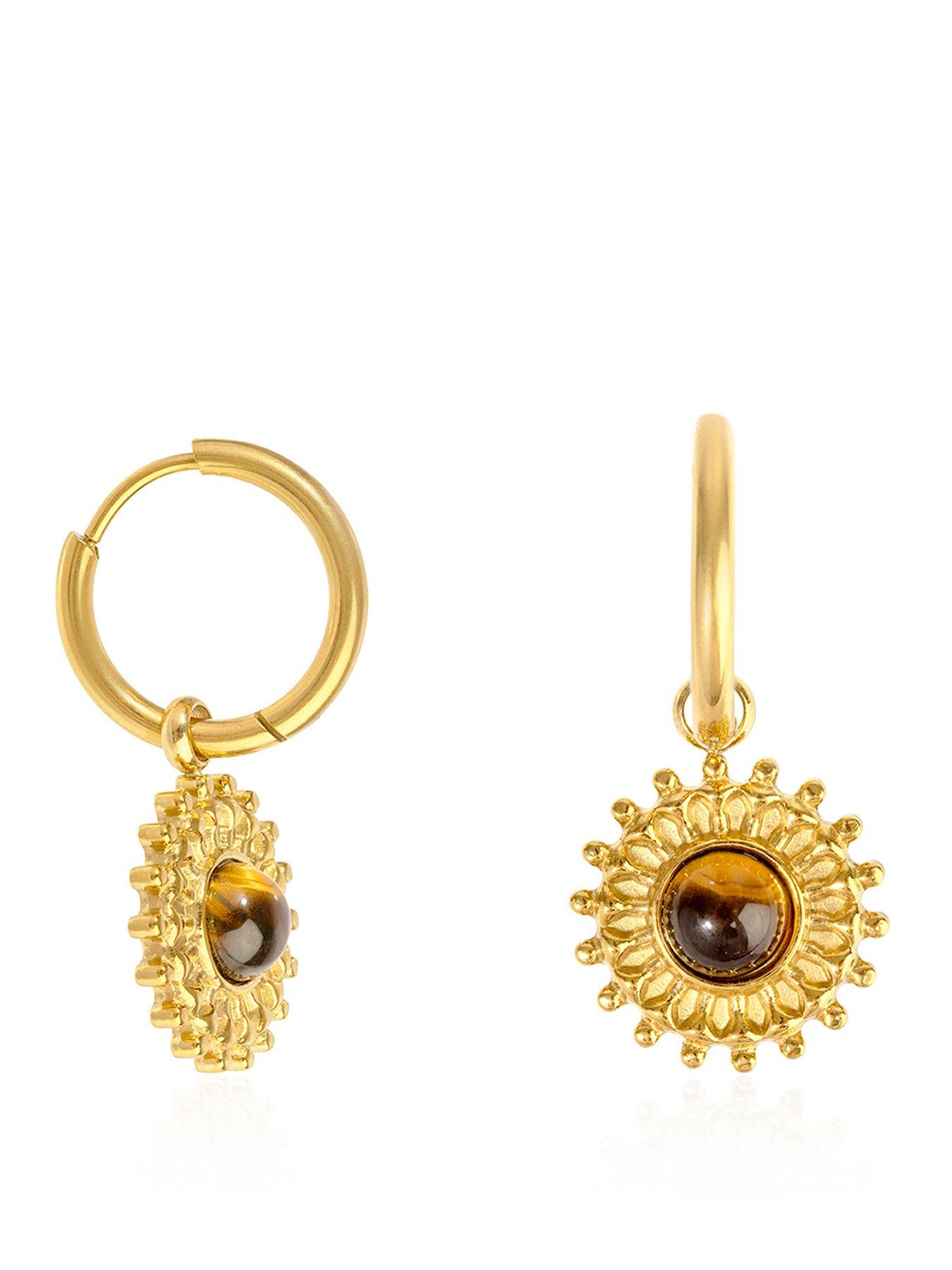 The Love Collection Plated Stainless Steel Brown Sun Charm Hoop - Gold -