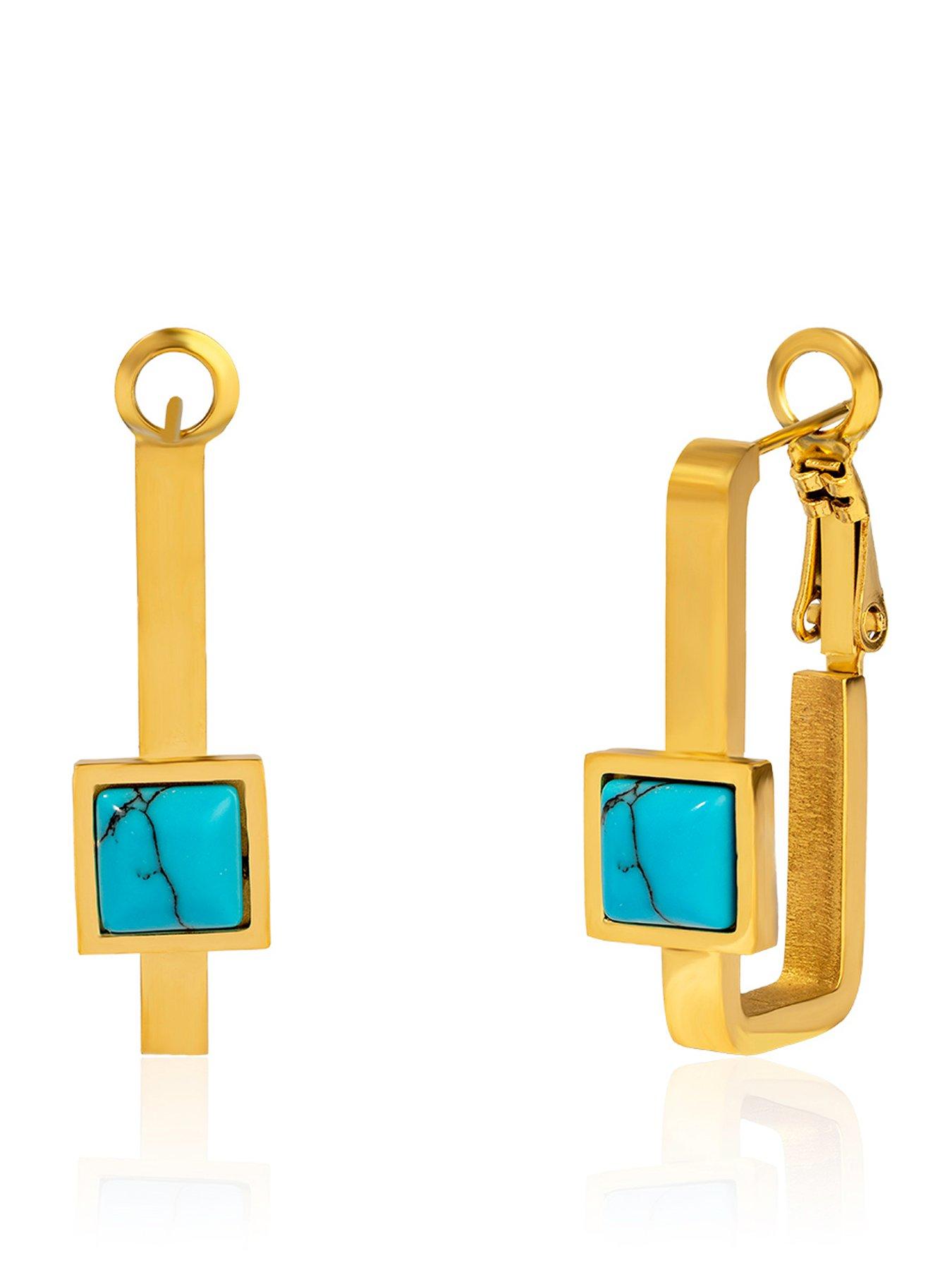 The Love Collection Plated Stainless Steel Turquoise Rectangle Hoop Earrings - Gold -