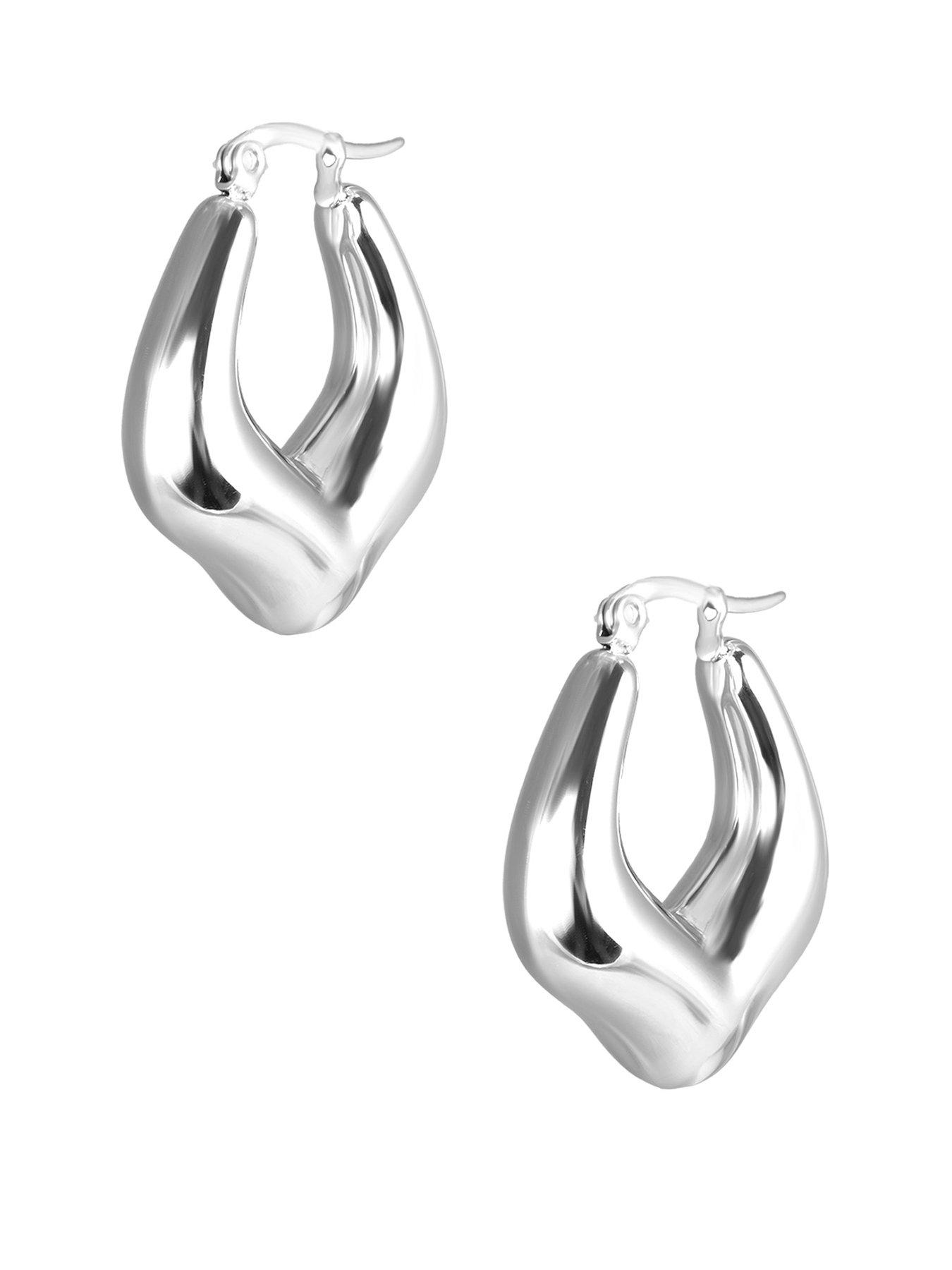 The Love Collection Stainless Steel Chunky V Shaped Creole Earrings These Stainless Steel Creole Earrings Feature A Bold V-Shaped Design For A Modern, Edgy Look. Durable And Polished, They Are Suitable For Daily Wear Or Statement Styling. Lightweight Yet Impactful, They Can Be Layered With Other Earrings Or Worn Alone. Perfect For Contemporary Jewellery Collections, They Bring Geometric Sophistication And Versatile, Fashion-Forward Style. Height: 29 Mm Width: 24 Mm Age Range: 3+ Fashion Jewellery Type: Earrings Metal Type: Stainless Steel Stainless Steel Chunky V Shaped Creole Earrings Made From Stainless Steel Everyday Wear Will Arrive In Stylish Gift Box Waterproof Jewellery Tarnish Resistant Non Refundable Due To Hygiene