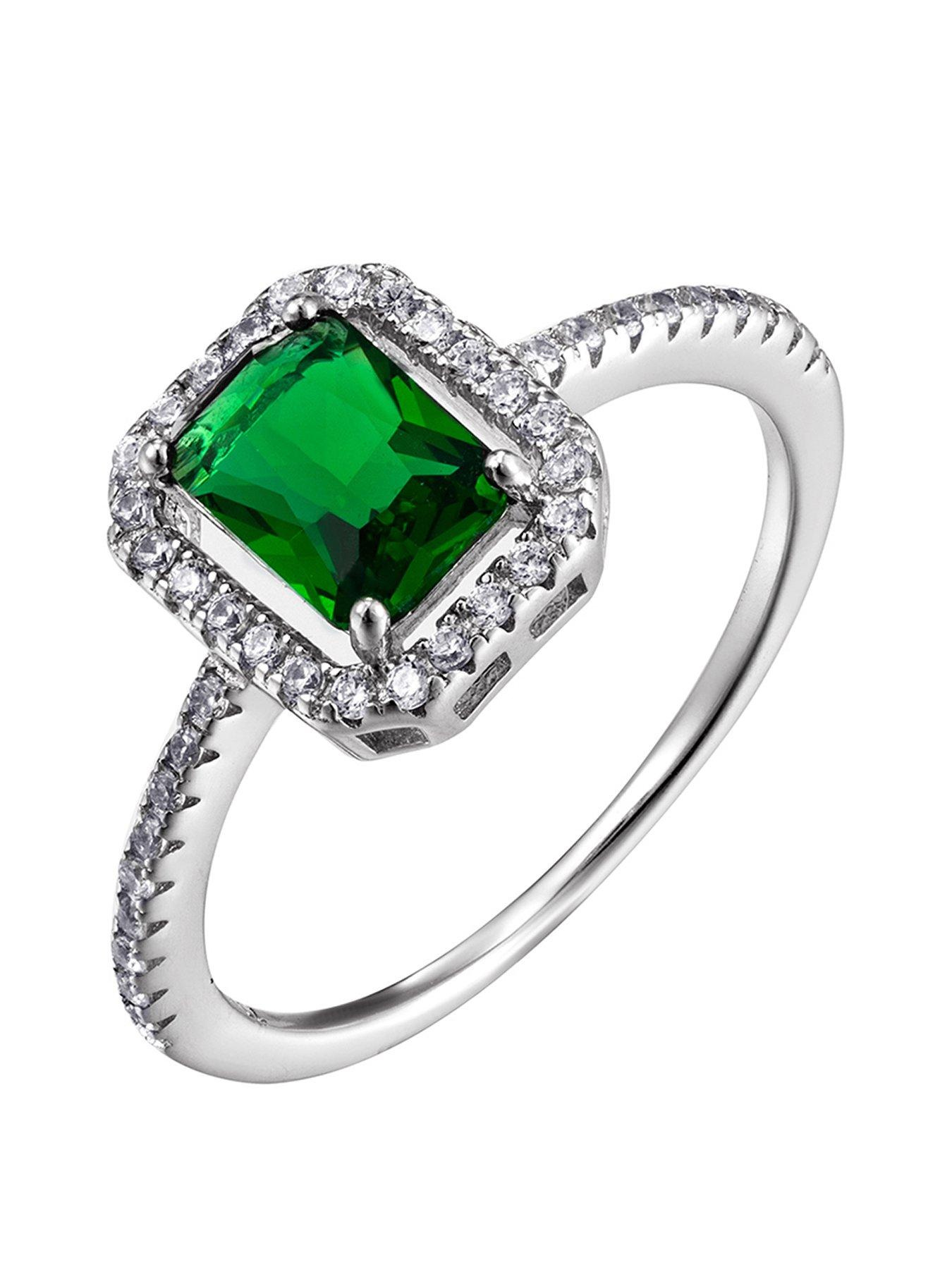 The Love Collection Sterling Silver And Emerald Cubic Zirconia Ring, Silver, Size J, Women - Ilver - J