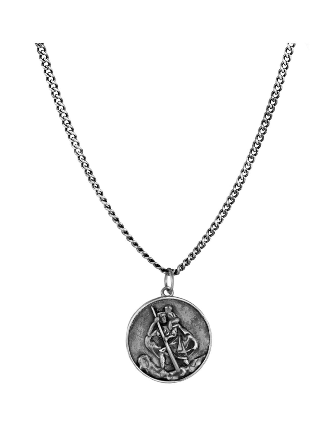 The Love Collection Sterling Silver Antiqued Finish St Christopher Pendant - Men