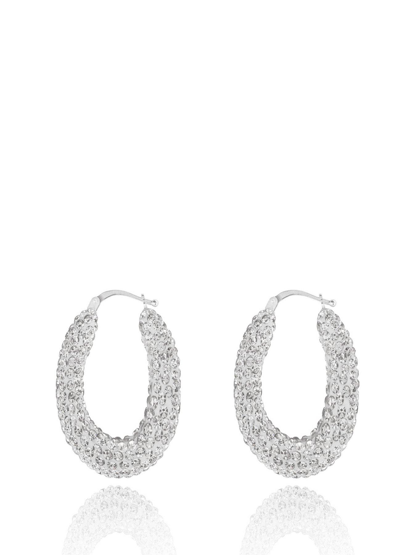 The Love Collection Sterling Silver Crystal Creole Hoops Stunning Creole Hoop Earrings Made From Sterling Silver And Encrusted With Sparkling Crystals. These Elegant Hoops Offer A Timeless And Sophisticated Look, Perfect For Elevating Your Style For Any Event. A Versatile Addition To Any Jewellery Collection. Height: 40 Mm Width: 32 Mm Fashion Jewellery Type: Earrings Metal Type: Silver Stone Type: Gem Adds A Touch Of Sophistication To Any Outfit. Sterling Silver Crystal Creole Hoops Crafted From Sterling Silver Will Arrive In A Love Silver Gift Box