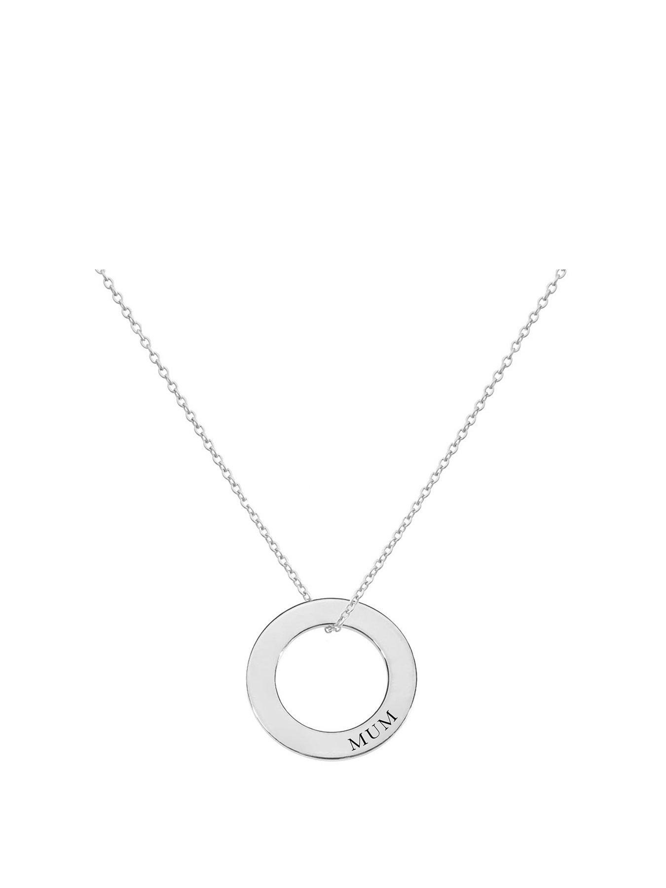 The Love Collection Sterling Silver Disc Mum Pendant Necklace, Silver, Women - Ilver -
