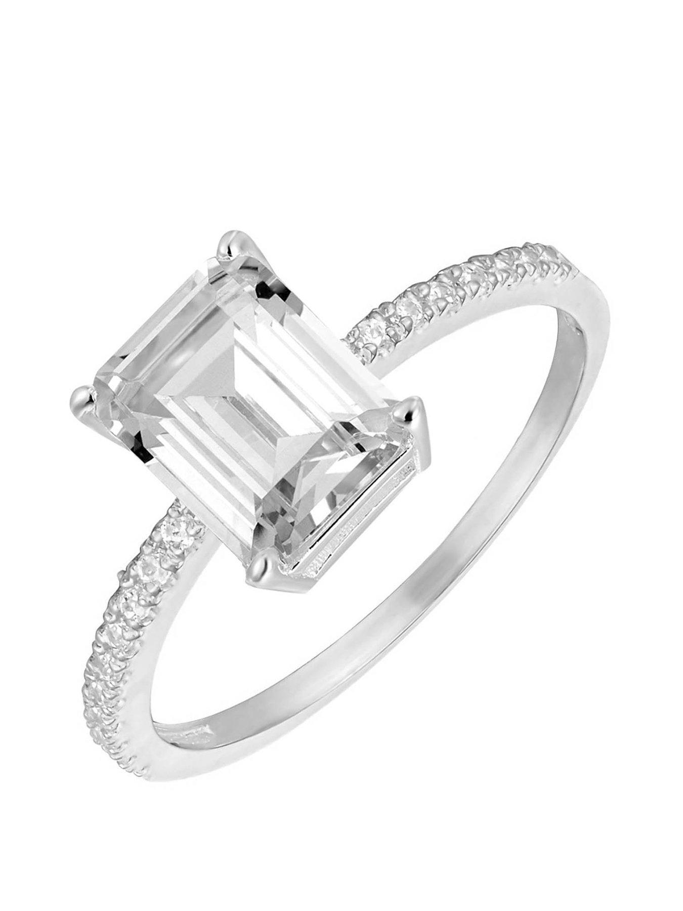 The Love Collection Sterling Silver Pave Classic Emerald Cut Cz Engagement Ring, Silver, Size J, Women - Ilver - J