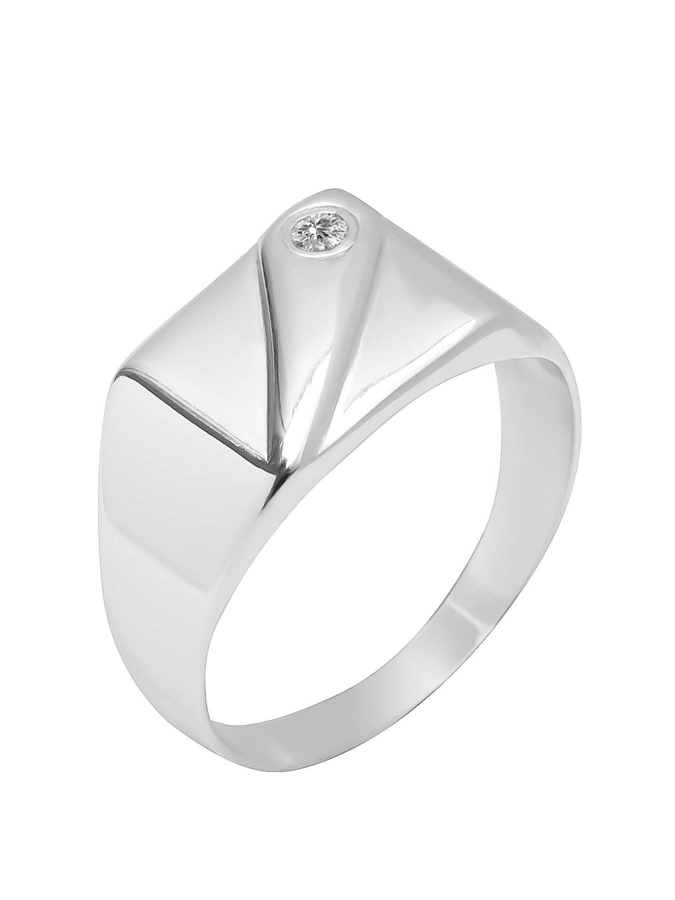 The Love Collection Sterling Silver Rectangle Signet Ring With Cz Detailing, Silver, Size X, Men - Ilver - X