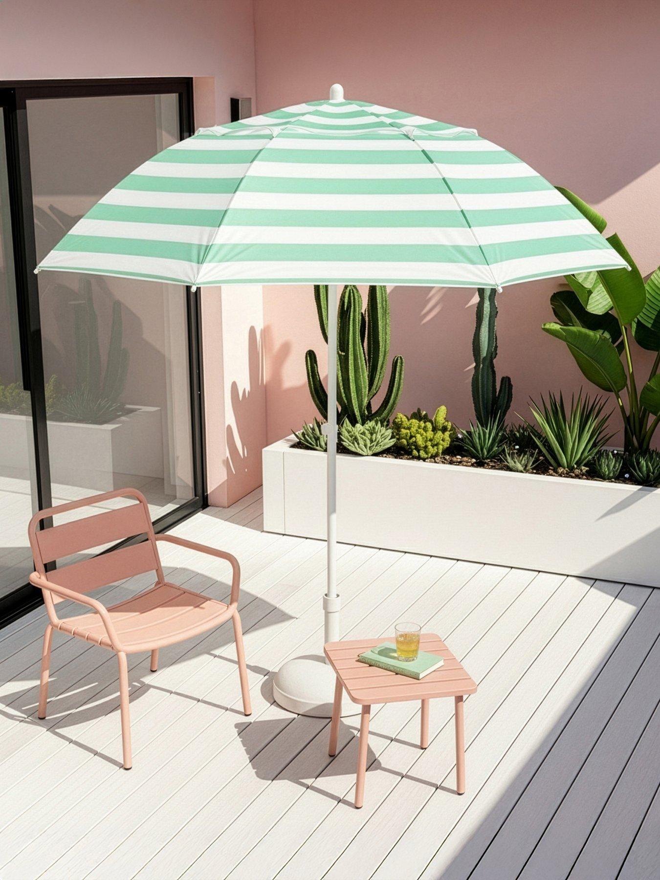The Very Collection 2M Push Up Parasol - Green Stripe Pretty And Practical Outdoor Shading Solution. Steel Powder-Coated Frame For Durability. Dia.170/200Xh200Cm, Rib Length 100Cm Steel Pole, 8 Steel Ribs, With Powder Coating 210D Oxford Fabric In Stripe With Air Vent & Plastic Tilt With Same Fabric Carry Bag