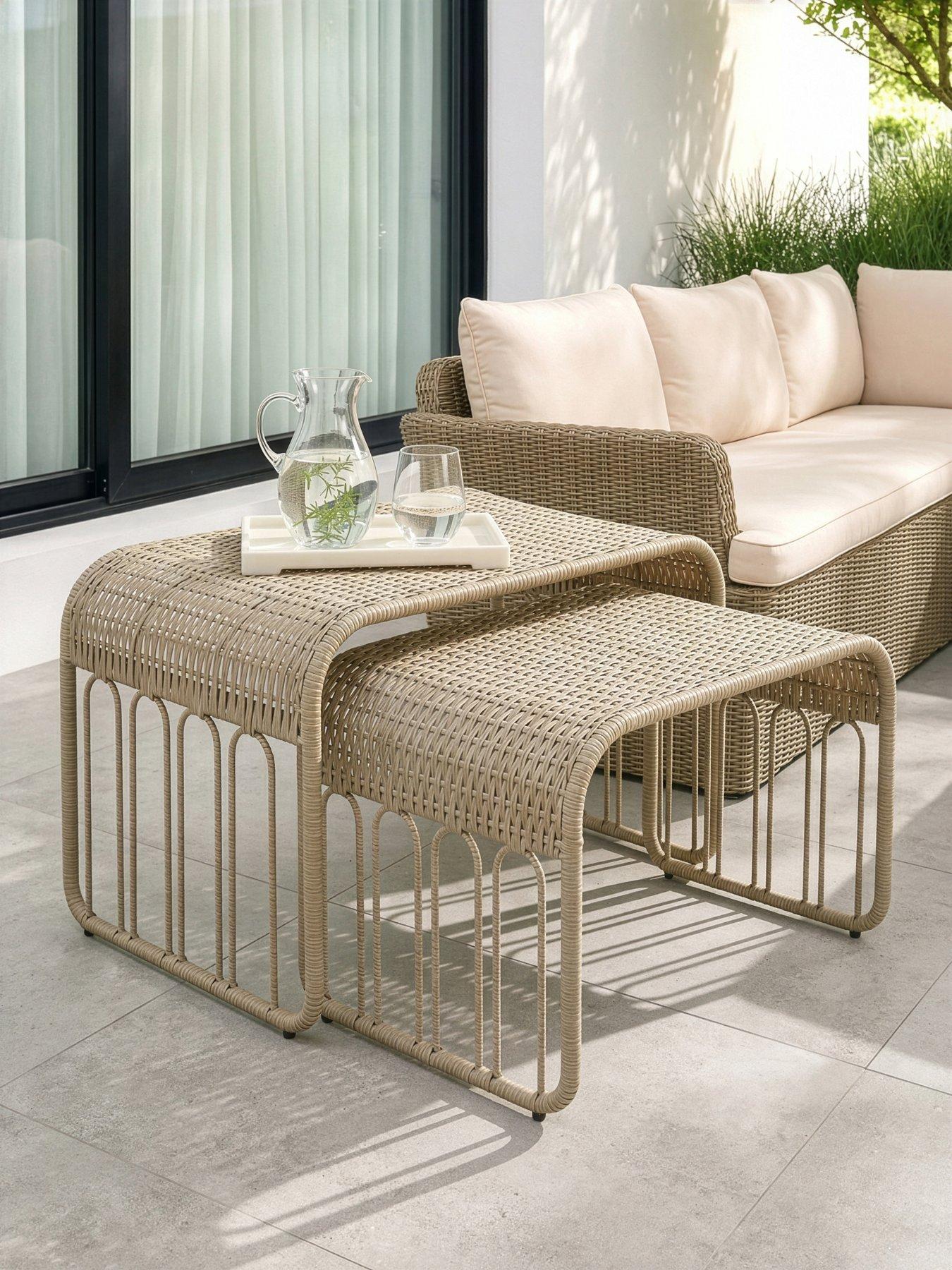 The Very Collection Albany Nested Garden Table Set 2 Metal Frame + Polyrattan Depth: 440 Mm Height: 440 Mm Width: 700 Mm Weather-Resistant Poly Rattan - Built To Handle The Outdoors With Minimal Maintenance. Space-Saving Nesting Design - Easy To Store When Not In Use. Strong Metal Frame - Provides Stability And Long-Lasting Use. Curved Modern Shape - Soft Edges For A Contemporary Garden Look. Lightweight & Portable - Easy To Move Around To Suit Your Needs.