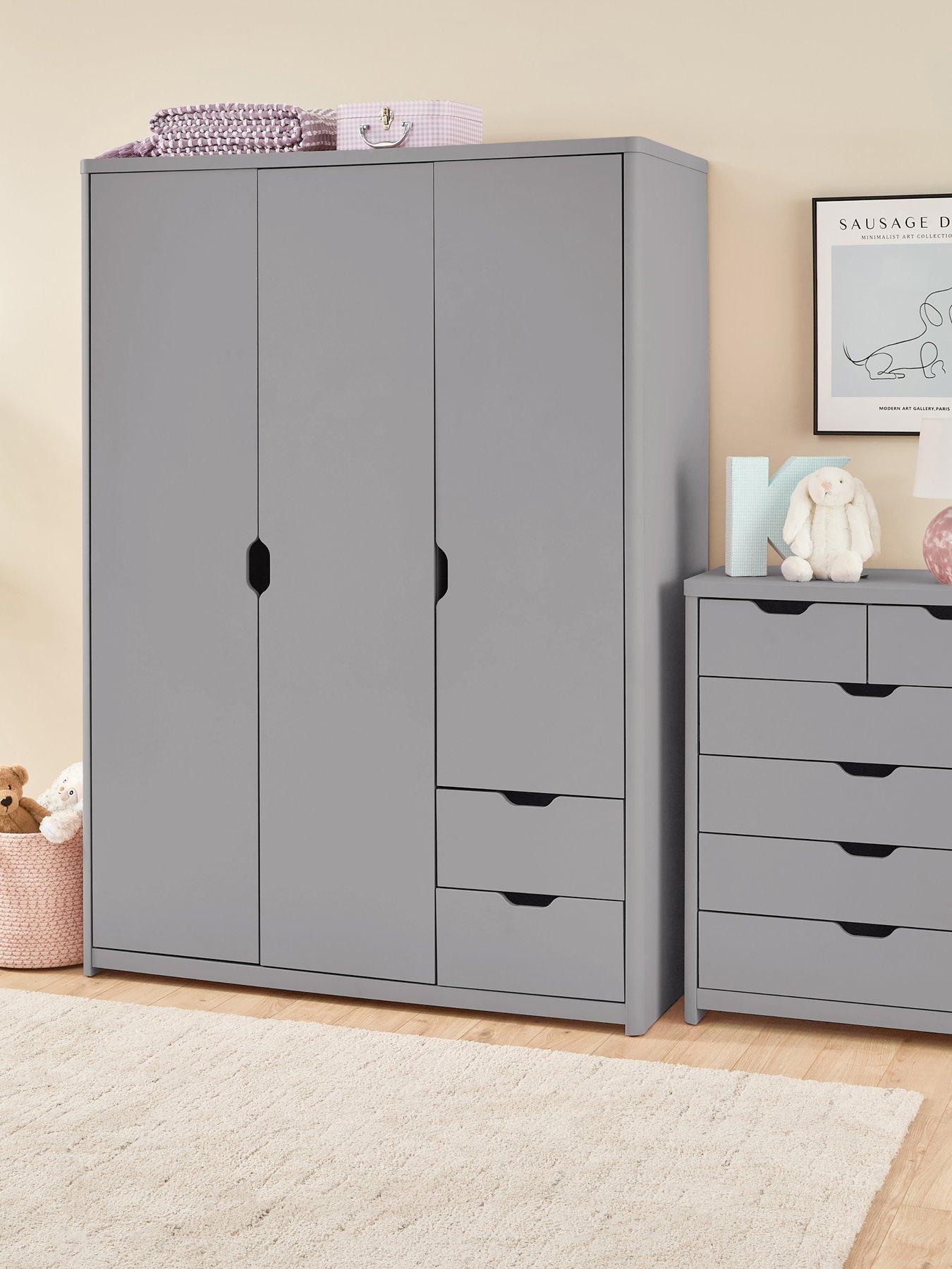 Very Home Aspen 3 Door, 2 Drawer Wardrobe In Grey Oak Effect Perfect For Kids Bedrooms, This Wardrobe From The Very Home Aspen Collection Is Features A Grown-Up Grey Oak-Effect With A Realistic Grained Finish. The 3 Doors Hide A Handy Amount Of Storage Space, While 2 Drawers Offer Added Room For Folded Clothes. It'S Styled With Smooth Rounded Corners, Curvy Cut-Out Handles And Easy-Glide Metal Runners. Please Remember To Measure Your Available Space Before Ordering. Dimensions: Height 175, Width 124, Depth 53 Cm Depth: 53 Cm Height: 175 Cm Material Content: E1 Board, Full Edging Mb Paper All Visible Panels In 30Mm, 15Mm Particle Boardbrown Carton Mail Order Packaging With Double Wall Thickness Metal Drawer Slide Side Panel Hollow Rounded Wrapping Nonvisible Panels In 15Mm ,12Mm Particle Board Width: 124 Cm Finish Type: Wood Effect Type: Soft Grip Handle Number Of Doors: 3 Door Number Of Drawers: 2 Runner Detail: Metal