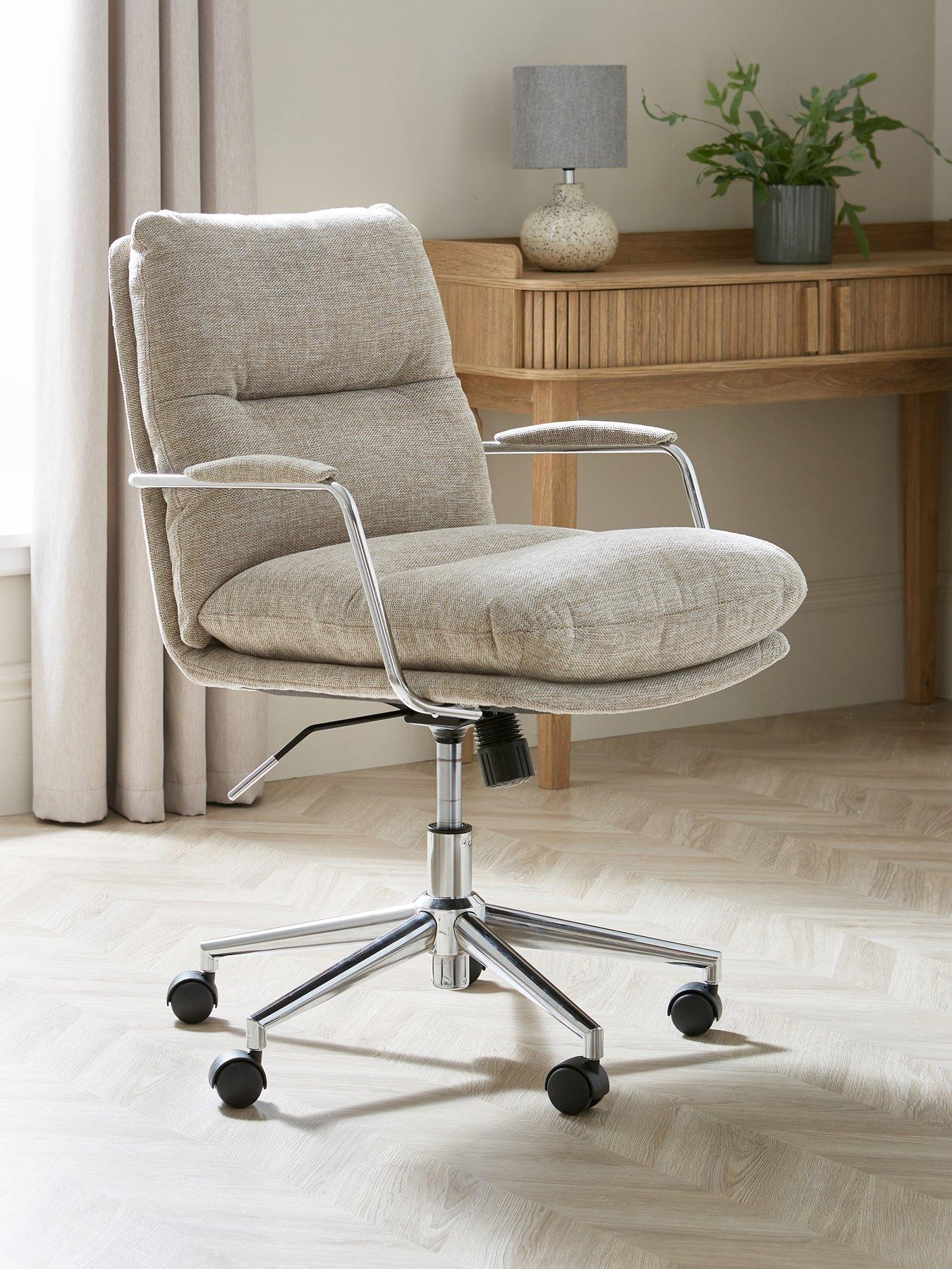 The Very Collection Belmont Office Chair Assembly: Self Assembly Depth: 70.5 CM Height: 93 CM Material Content: Fabric,foam,metal,nylon Width: 57 CM Tilt and gas lift mechanism Seat height range from 85.5 - 93 cms The Forest Stewardship Council (FSC) is a global, not-for-profit organisation. Look for the FSC logo on our FSC-certified products - by choosing these you are supporting responsible management of the world's forests. Learn more at www.fsc.org. FSC-N003961.