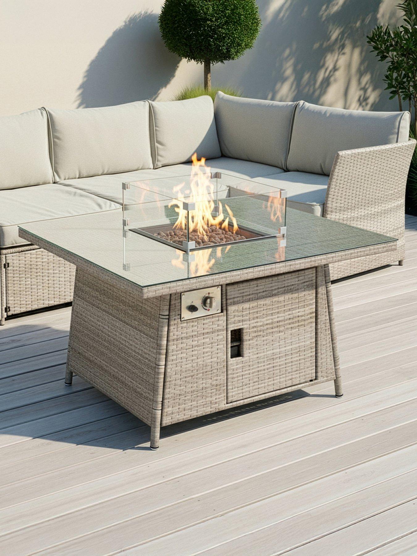 The Very Collection Calgary Firepit Table Share The Comfort And Warmth In The Comfort Of Your Garden. Style: Dining Set Table Size:145X85X69Cm