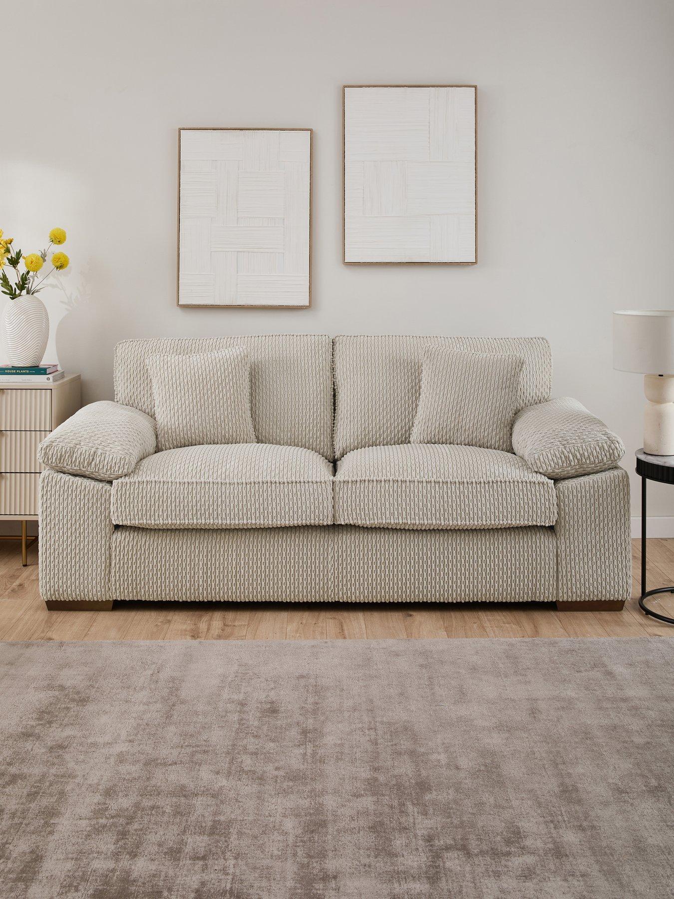 Very Home Clayton 3 Seater Fabric Sofa In Stone Or Charcoal - Made To Order In The Uk H 94 X W 212 X D 97 Cm Waffle Fabric Sumptuously Soft And Temptingly Textural, This Sofa From Very Home'S Clayton Collection Is Available In Charcoal And Stone Colour Options To Suit Your Choice Of Light Or Dark. Sitting On Wooden Block Feet To Raise It Slightly Off The Floor, It'S Detailed With Plump Arm Pads And Comes Complete With A Pair Of Accent Cushions. Free Swatch Service Get A Feel For This Fabric Before You Buy With Our Free Swatch Service. Simply Email Swatchorder@Clickspares.Co.Uk With Your Name And Address, Along With The Sofa Range Name, Item Number, Colour Choice And The Name Of The Retailer'S Website You'Re Ordering From. Your Swatches Will Be Delivered Within 5 Working Days (Subject To Availability). Please Remember To Measure Your Available Space Before Ordering. Dimensions: Height 94, Width 212, Depth 97 Cm Assembly: Ready Assembled Depth: 970 Mm Height: 940 Mm Material Content: 88% Polyester/12% Nylon Seat Cushion Filling: Extra Flex Seat Cushion, A Durable Foam Base With A High Loft Fibre Topper Width: 2120 Mm Back Type: Removable Standard Back Cushion Filling: Fibre Filled Back Cushion Number Of Seats: 3 Seat Construction: Removable Seat Cushion Seat Height (In Cm): 55 Dowelled, Screwed, Glued And Stapled Joinery Hardwood And Composite Board Frame Serpentine Seat Springs And Silent Wire. Extraflex High Comfort Seat Cushions 15 Year Frame Guarentee Seat Firmness: Medium-Soft (Based On Internal Sit Test) The Forest Stewardship Council (Fsc) Is A Global, Not-For-Profit Organisation. Look For The Fsc Logo On Our Fsc-Certified Products - By Choosing These You Are Supporting Responsible Management Of The World'S Forests. Learn More At Www.Fsc.Org. Fsc-N003961.