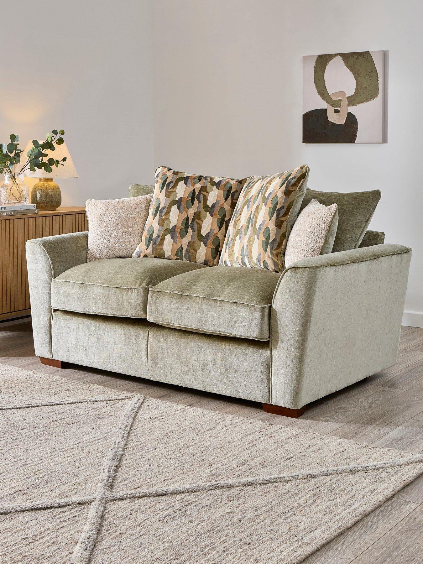 The Very Collection Clover SB 2 Seater Sofa Classic design and beautiful proportions, providing both style and comfort to any living space. Assembly: Ready Assembled Depth: 980 MM Height: 970 MM Material Content: 100% POLYESTER Seat Cushion Filling: Extra Flex Seat Cushion, A Durable Foam Base With A High Loft Fibre Topper Width: 1780 MM Back Type: Removable Standard Back Cushion Filling: Fibre Filled Back Cushion Number of Seats: 2 Seat Construction: Removable Seat Cushion Seat Height (in cm): 56 Dowelled, screwed, glued and stapled joinery Hardwood and composite board frame Serpentine seat springs and silent wire. ExtraFlex high comfort seat cushions Fibre filled backs for added comfort Sprung seat and sprung back for added support Seat Firmness: Medium/Soft (based on internal sit test)