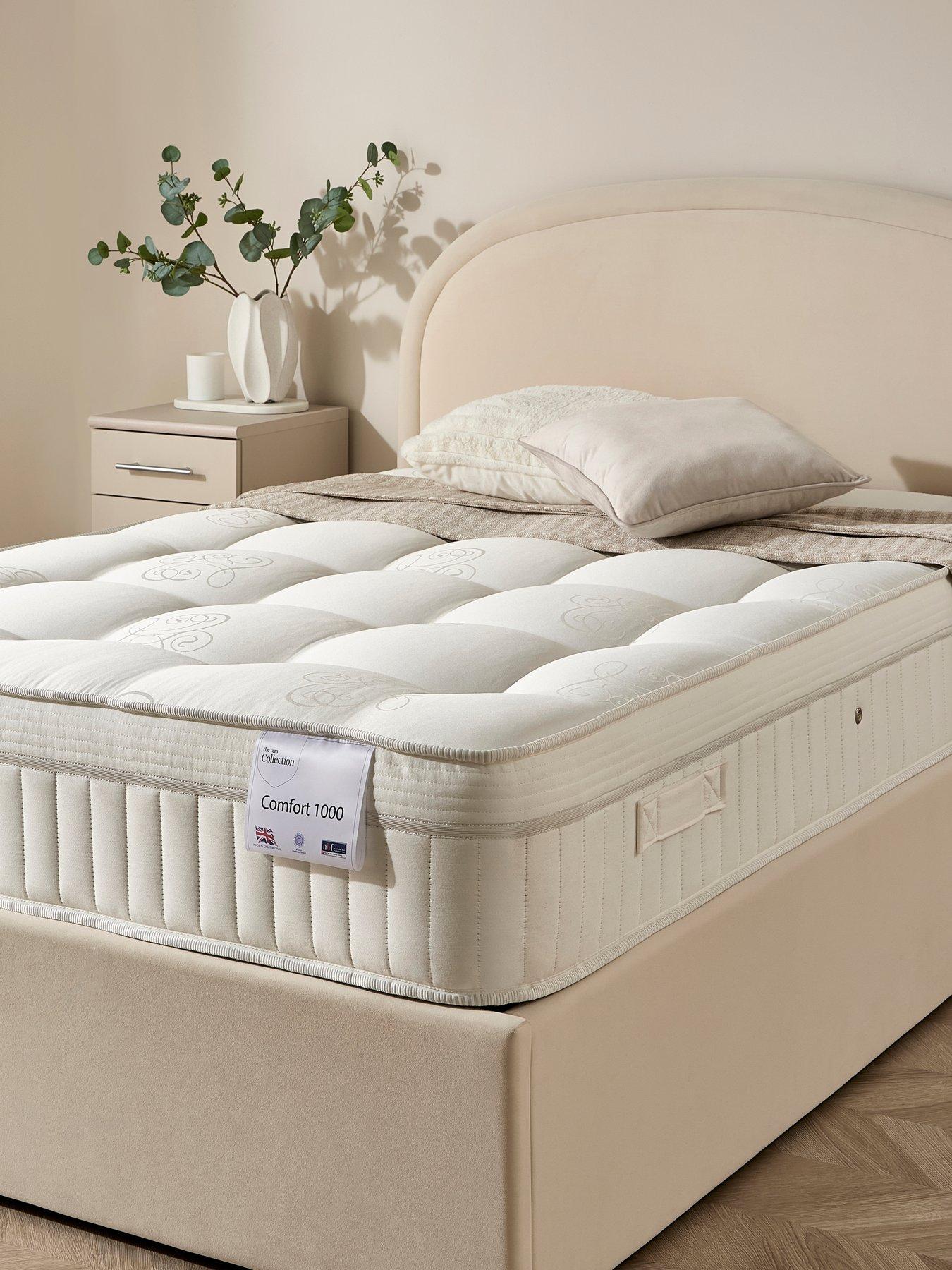 The Very Collection Comfort 1000 Pocket 1000 Double Mattress Comfort 1000 Pocket Spring Mattress In Single, Double, King Size And Super King. The Comfort 1000 Mattress Features A 1000 Pocket Spring Unit Designed To Provide Excellent Support And Responsive Comfort, Allowing Each Spring To Work Independently To Support Your Body And Reduce Motion Transfer. It Is Generously Filled With Superior Sumptuous Fillings, Creating A Comfortable And Supportive Sleeping Surface With A Reassuringly Heavy, High-Quality Feel. The Mattress Is Fully Turnable, Helping To Extend Its Lifespan And Maintain Comfort Over Time. Finished With A Classic Tufted Design For Added Durability, It Also Includes Practical Side Handles For Ease Of Rotation. T He Sleeping Panel Is Made From 100% Polyester, While The Border Combines 50% Viscose And 50% Polyester, Offering A Refined, Durable Finish That Complements Both Comfort And Longevity. Assembly: Ready Assembled Depth: 28 Cm Height: 135 Cm Width: 190 Cm 1000 Pocket Spring Unit Superior Sumptuous Fillings - Multiple Layers Of High-Quality Fillings. Built With Robust Materials To Give A Solid, Substantial Feel. Turnable Mattress. Tufted Finish.