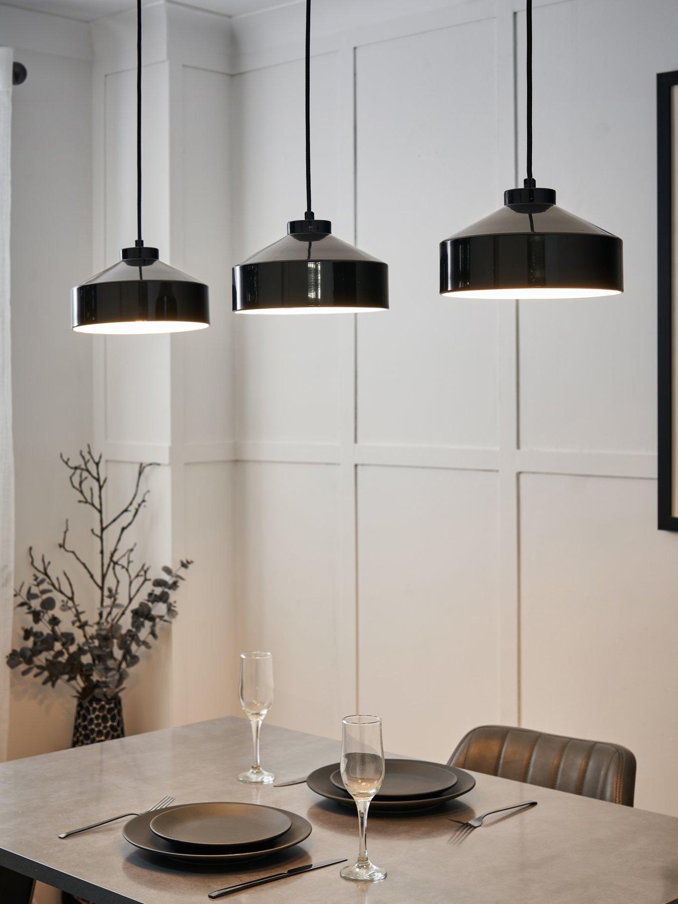 The Very Collection Gloss Black Metal Industrial 3 Light Diner Pendant