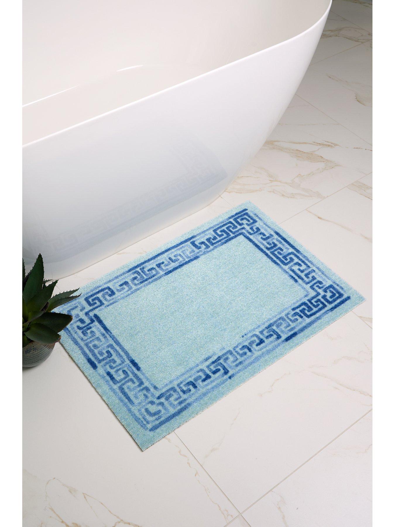 Very Home Greek Key Add A Subtle Statement To Your Bathroom Clean And Simple Designs. Paring A Light Blue Mat With A Dark Blue Greek Key Border To Create An Elegant And Understated Design, The Perfect Refined And Modern Addition To The Bathroom. Depth: 1 Cm Stain Resistant Height: 80 Cm Material Content: Nylon Width: 50 Cm Designed & Manufactured In The Uk Anti Slip Noise Reducing Fast Drying Suitable For Under Floor Heating