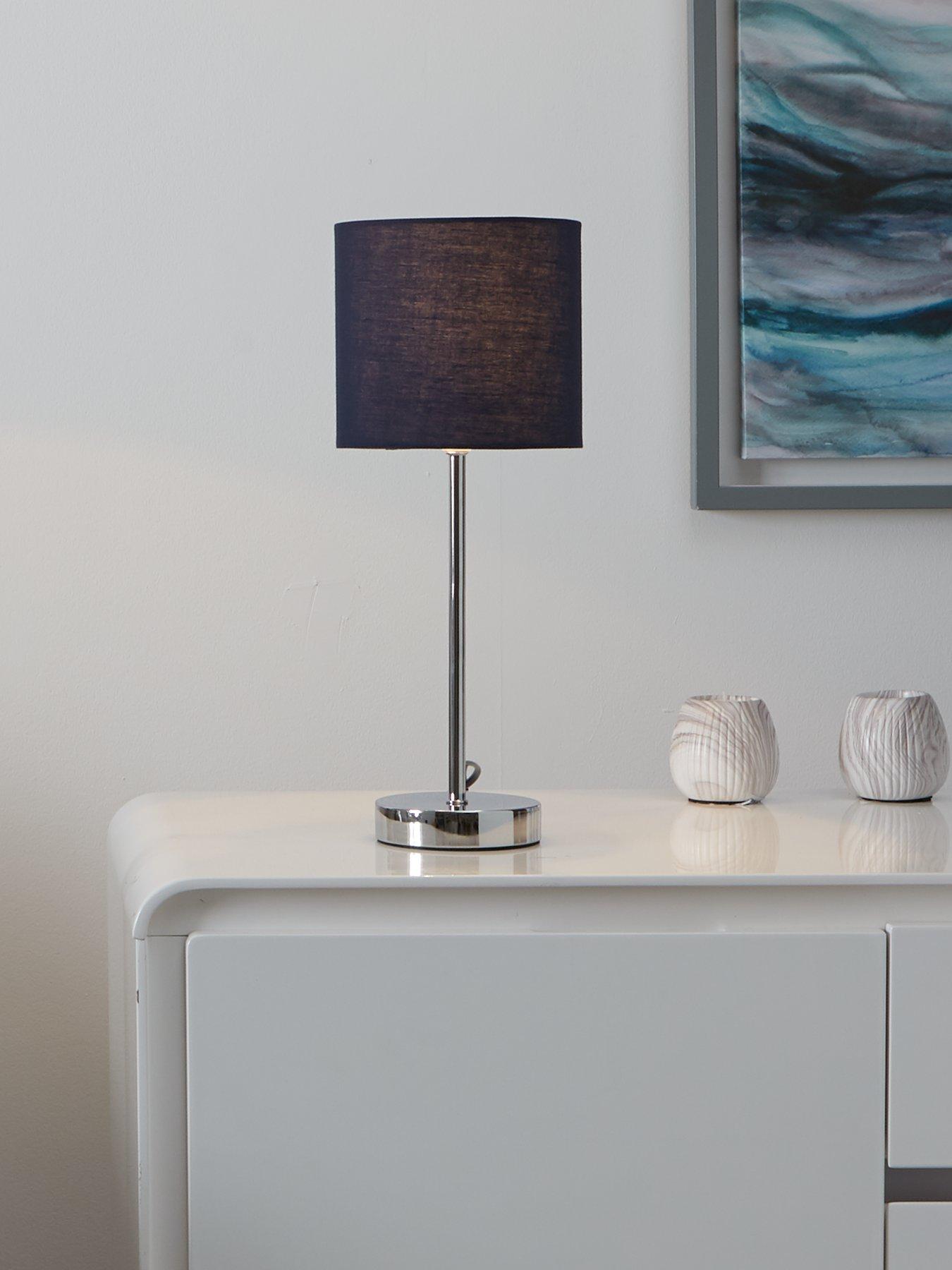 Everyday Langley Table Lamp In Navy - 41.5 Cm This Great Value Table Lamp From The Langley Range Is Simply Styled For A Modern Look On Any Shelf, Sideboard Or Table. A Textile Fabric Shade Is Finished In A Modern Navy Colour That Will Match Most Decors, While A Chrome Plated Base And Stem Shine In The Glow Of The Light To Draw Even More Attention To The Contemporary Design. Requires 1X E14 Bulb (Not Included). A Co-Ordinating Floor Lamp And Pendant, As Well As Alternative Colour Options, Are Available To Add Separately. Depth: 160 Mm Simple Design With Competitive Price, Can Match Different Color Of Shade Depends On Your Mood Height: 415 Mm Material Content: Textile Fabric Shade+Metal Width: 160 Mm