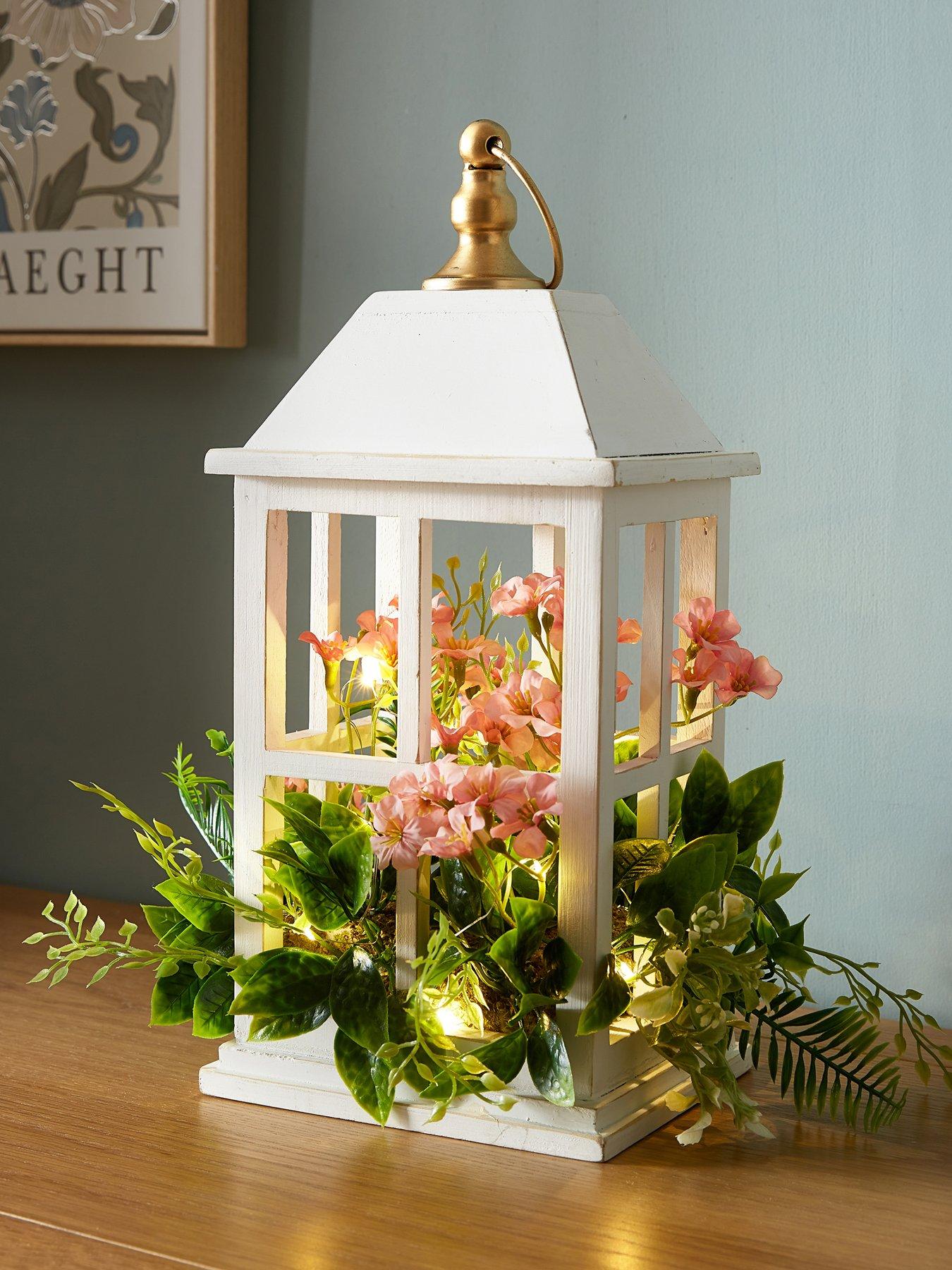 The Very Collection Lantern Filled With Foliage - A Beautiful Home Decoration With A Floral Twist. Bring Some Of The Rustic Charm Of Outdoors Into Your Home With The Very Collection Lantern Filled With Foliage. The 36.8Cm Tall White Lantern Has Faux Green Foliage And Pink Flowers Spilling Out From The Sides In An Elegant Design You Can Display All Year Round. For Indoor Use. Depth: 215 Mm Height: 368 Mm Width: 265 Mm Pe, Polystyrene, Iron, Polyester, Wooden