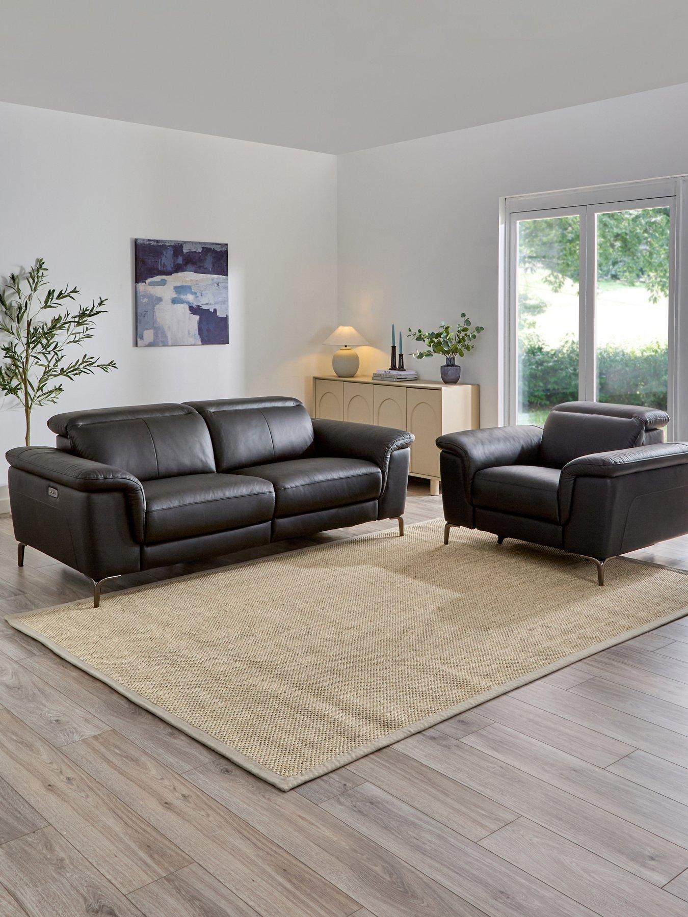 The Very Collection Lorenza Leather/Faux Leather 3 Seater Sofa + Armchair Set (Buy & Save!) - Black -