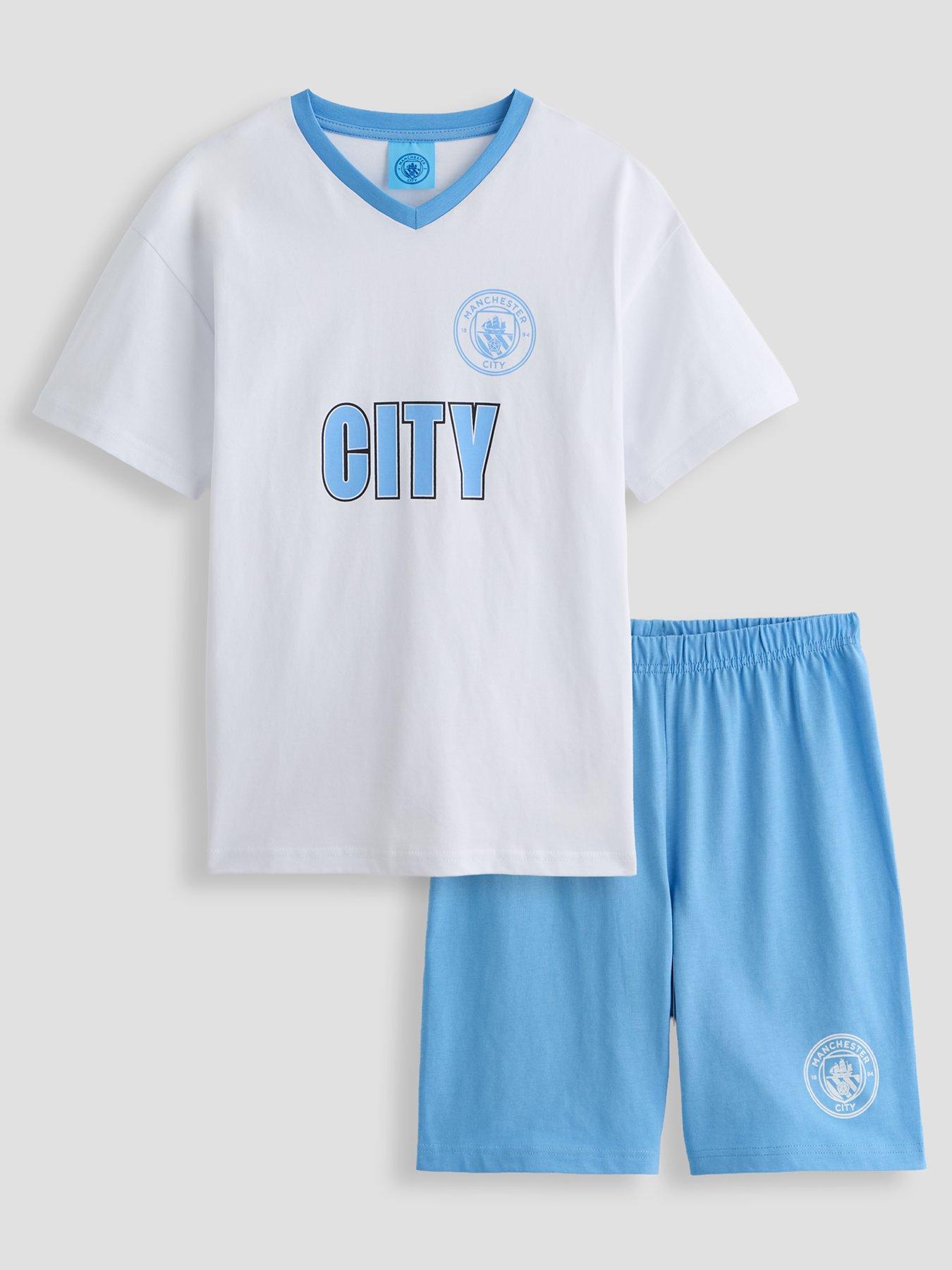 The Very Collection Man City FC Football V Neck Shortie Pyjama Size & Fit True to size - order your usual size Regular fit Available in sizes 3-4 years - 14-15 years Details Man City FC Football V Neck Shortie Pyjama by The Very Collection Blue Single Short sleeves V neck Elasticated waist detail Pull on fastening Material Content: 100% Cotton Washing Instructions: Machine Washable