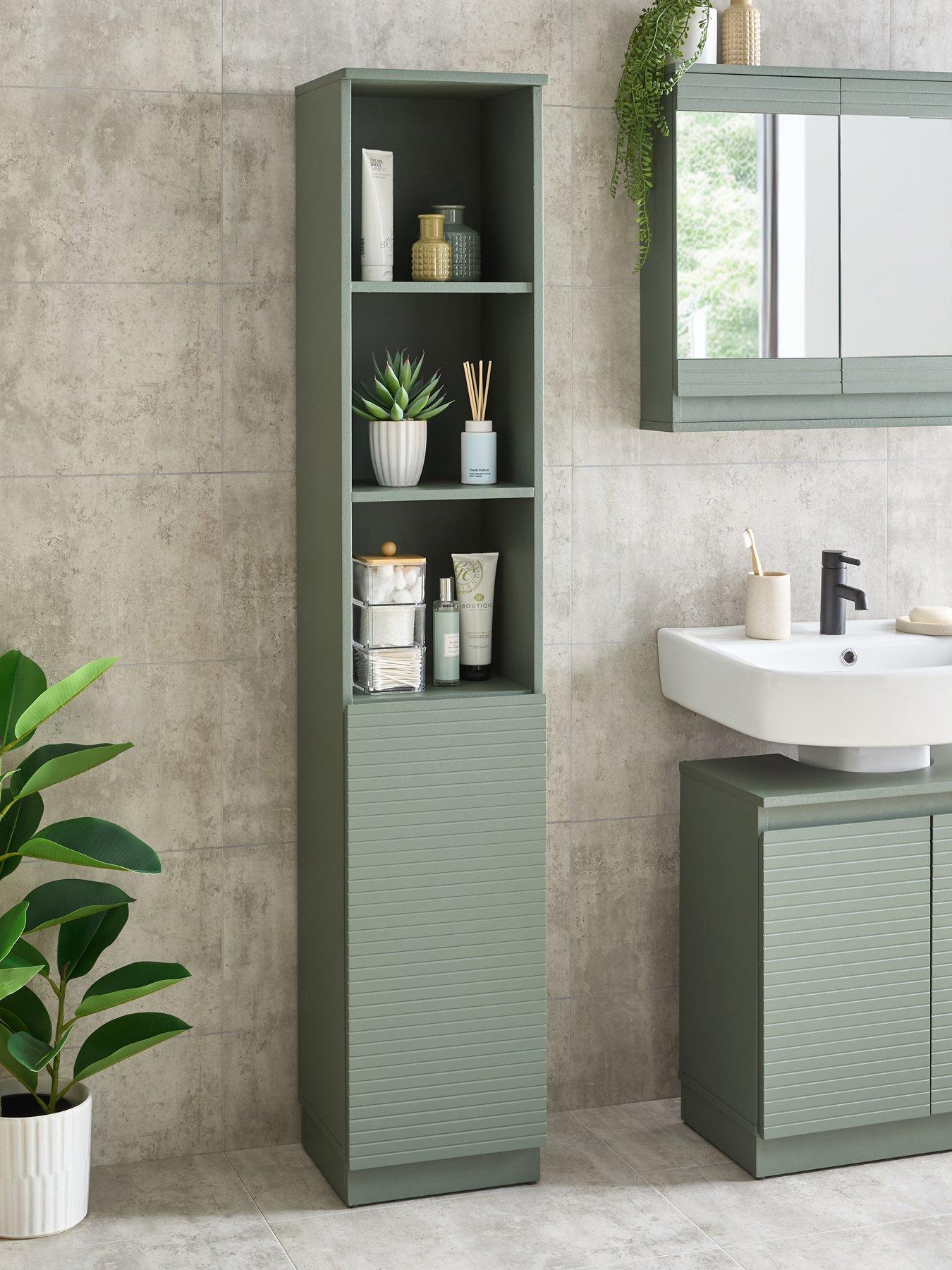 The Very Collection Noa Tall Cabinet Noa Tall Cabinet From The Noa Range, This Bathroom Floor Cabinet Has A Tall, Narrow Design To Give You Plenty Of Storage On A Small Footprint. Finished In A Serene Seafoam Green, This Cupboard Is Great For Stowing Away Cleaning Products, Toiletries And More, While The Open Shelving To The Lets You Display Candles, Perfume Bottles Or Even Rolled Up Towels For A True Spa-Like Feel. Push To Open Doors Present Paired With Panelled Design Add A Contemporary, Clean Finish. Get The Look With Matching Bathroom Furniture From The Noa Collection, Which Is Available Separately. Assembly: Self Assembly Depth: 29.5 Cm Height: 170 Cm Material Content: Mdf, Pb Width: 32 Cm Handle Material: No Handle Number Of Doors: 1 Door Number Of Shelves: 4 Adjustable: N