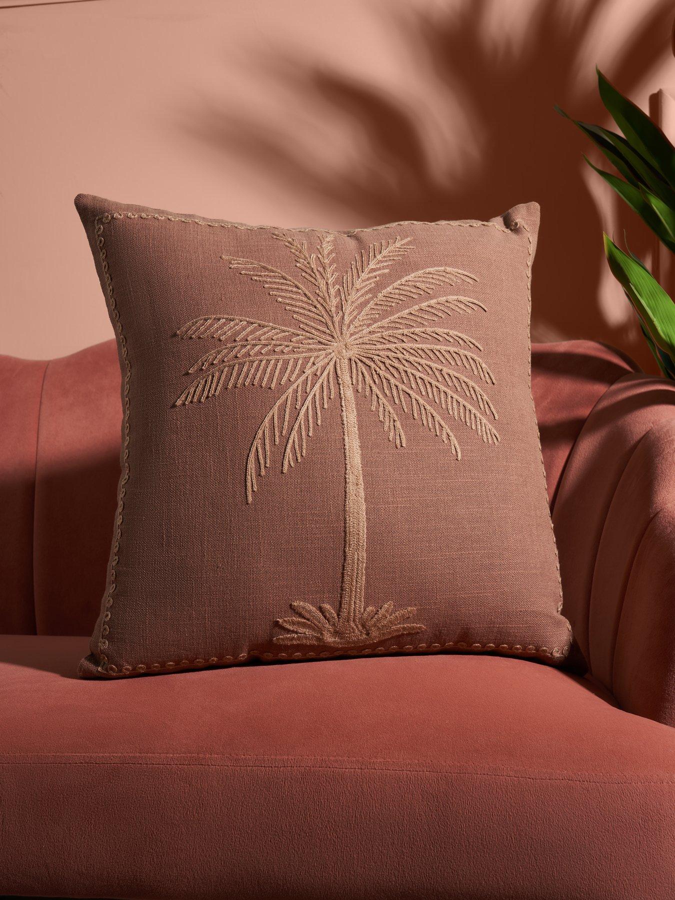The Very Collection Palm Springs Cushion This chic cushion features an embroidered palm design on a rich, dark clay background, instantly evoking the effortless glamour of a mid-century modern oasis. Crafted for both style and comfort, the vibrant yet earthy colour palette and intricate detailing make it a sophisticated statement piece perfect for layering on a sofa, armchair, or bed, offering a refreshing and exotic flair to any contemporary or bohemian space. Height: 45 CM Material Content: 100% Cotton Width: 45 CM This chic cushion features an embroidered palm design on a rich, dark clay background, instantly evoking the effortless glamour of a mid-century modern oasis. Crafted for both style and comfort, the vibrant yet earthy colour palette and intricate detailing make it a sophisticated statement piece perfect for layering on a sofa, armchair, or bed, offering a refreshing and exotic flair to any contemporary or bohemian space.